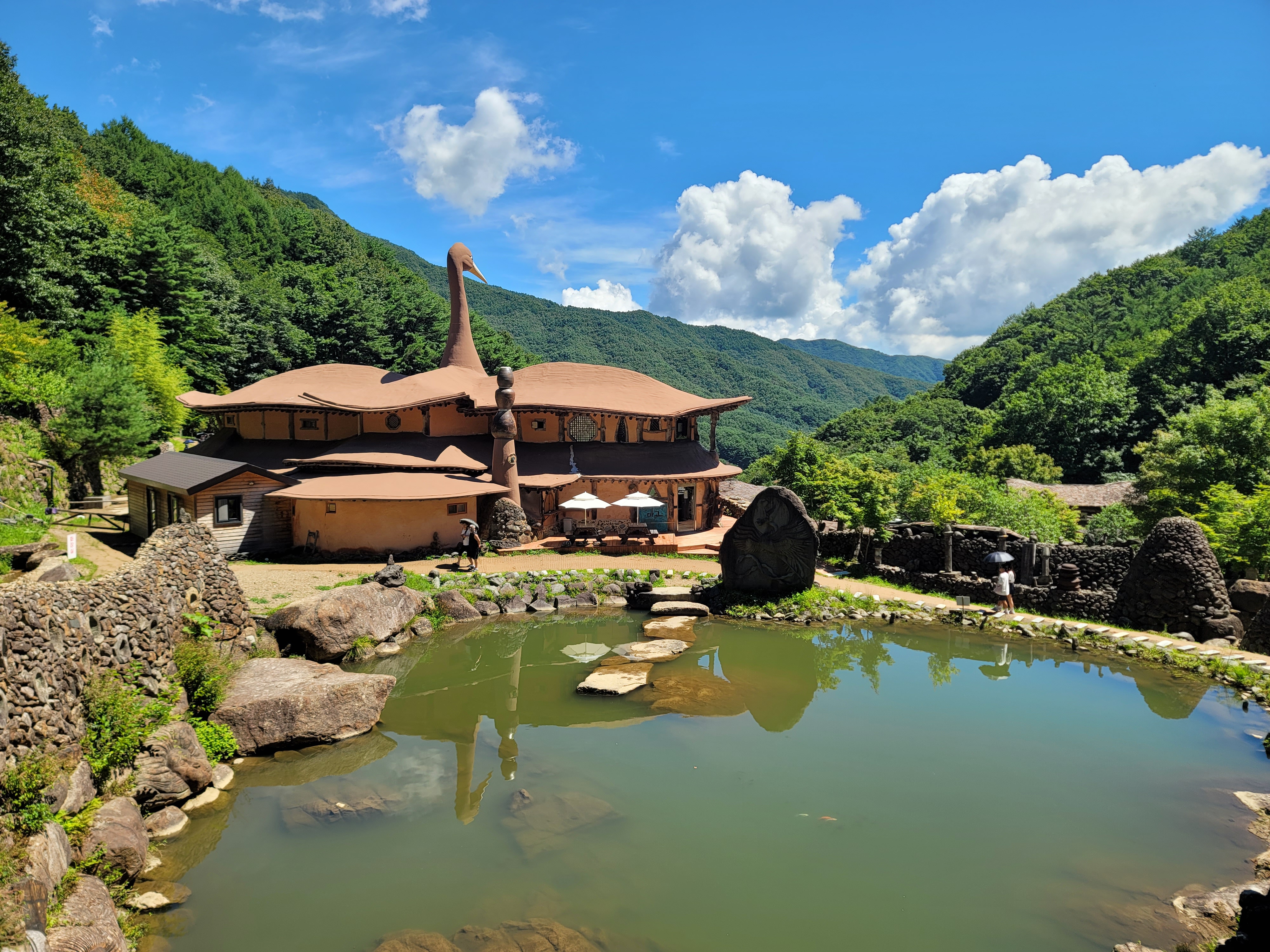 지리산 자락에 자리한 이곳은 1983년부터 건립이 시작되어 수십년간 조성된 대규모 전통 양식 건축물과 조형물로 유명합니다.