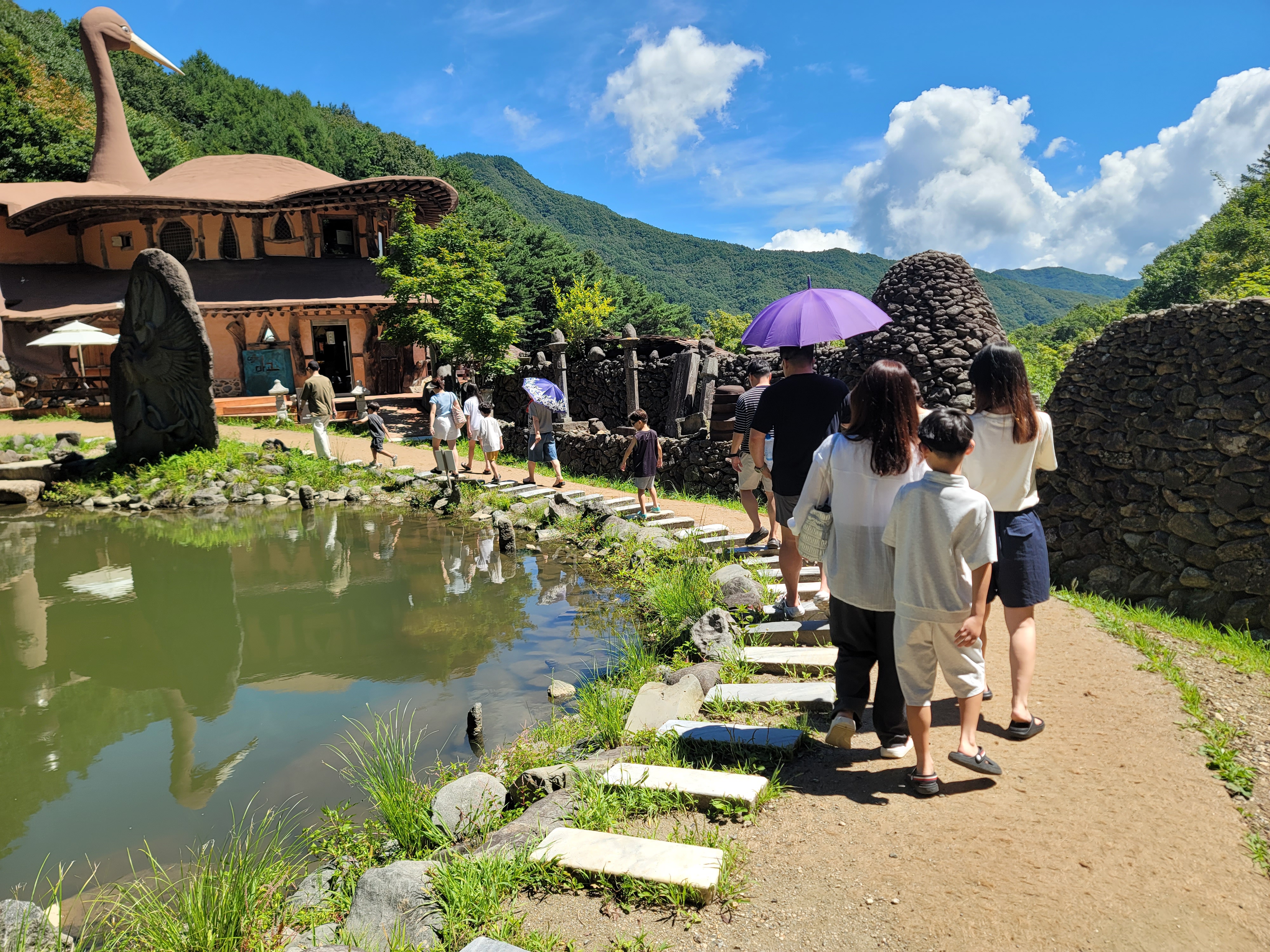 - 수많은 돌탑과 솟대가 이국적이고 신비로운 분위기를 자아냅니다.