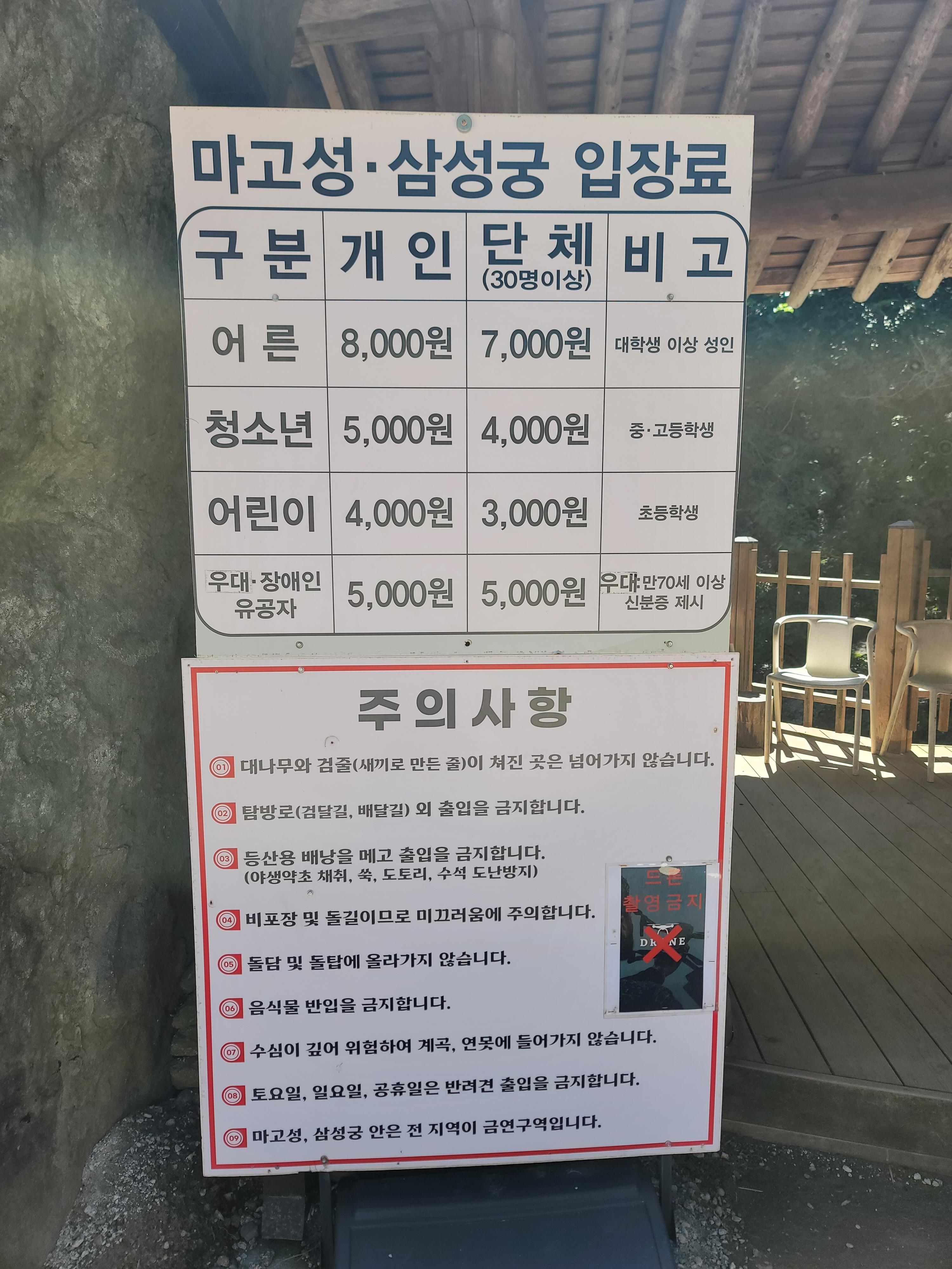 매표소에서 삼성궁까지 약 1.5km 정도 걸어 올라가야 합니다.