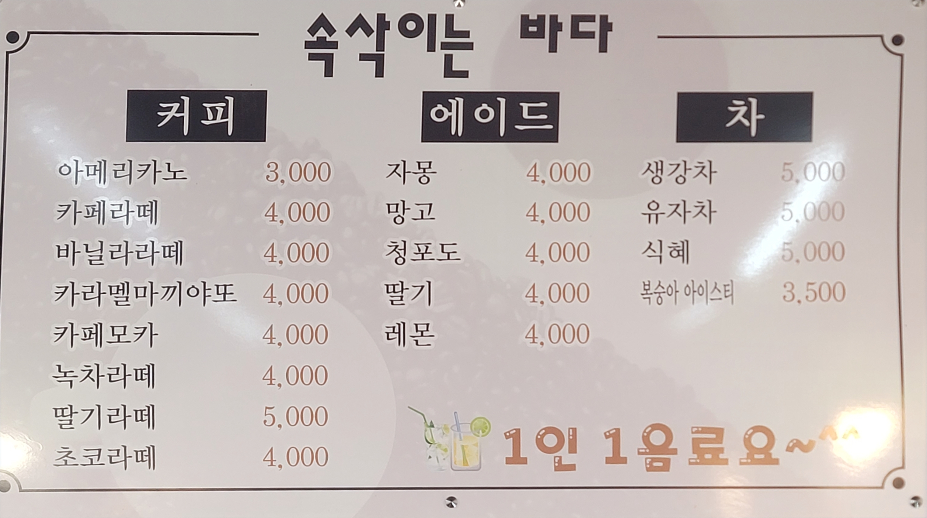 쉬미항 바로 앞에 위치해 있어 아름다운 바다를 보며 식사를 즐길 수 있습니다.