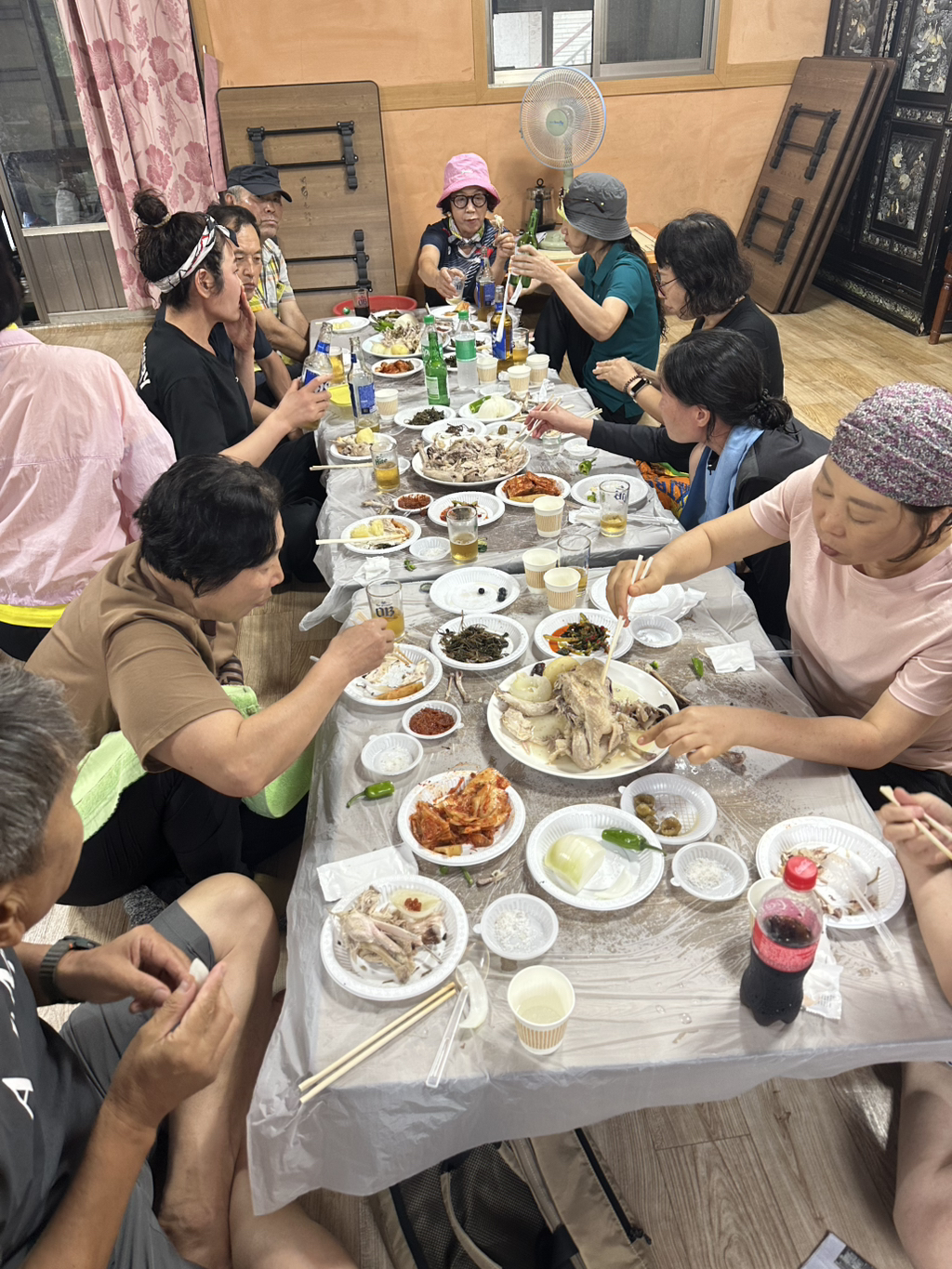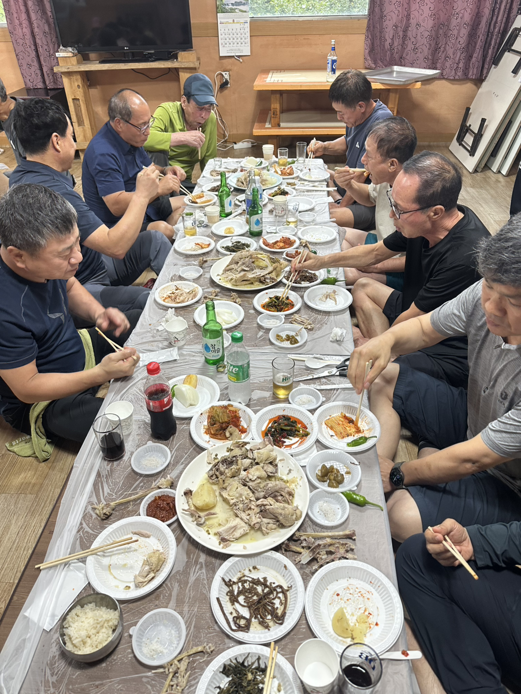 벽소령산장식당에서 토종닭백숙으로 점심식사
