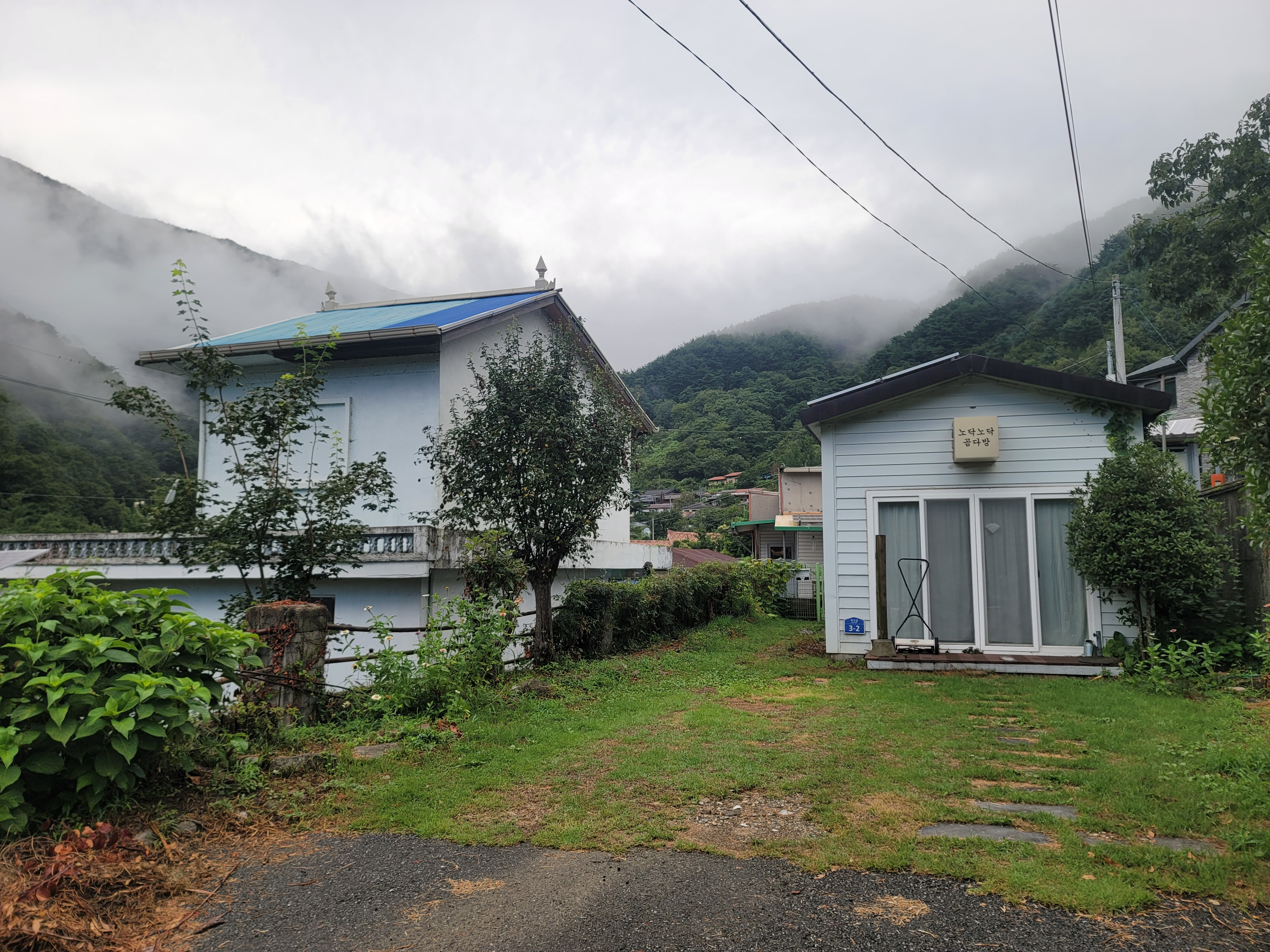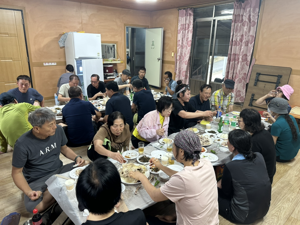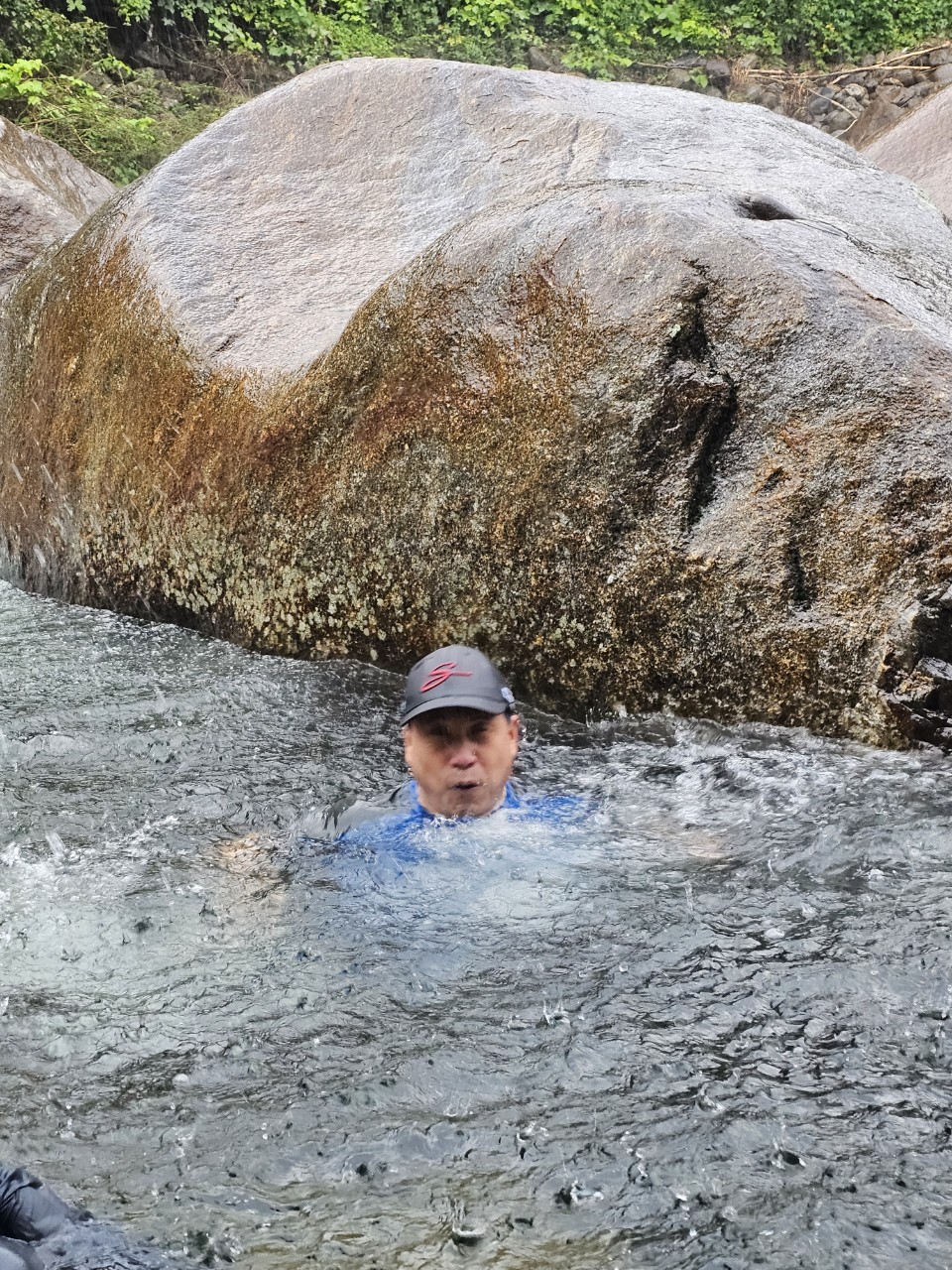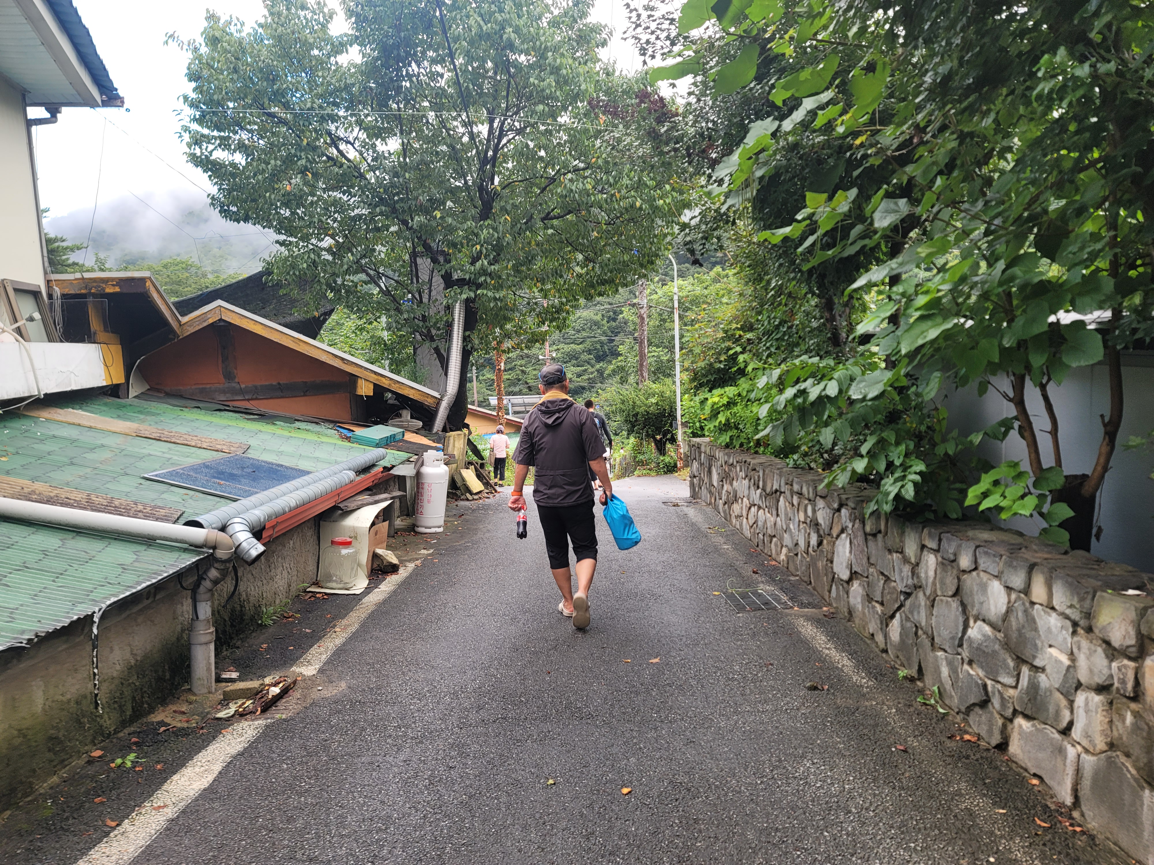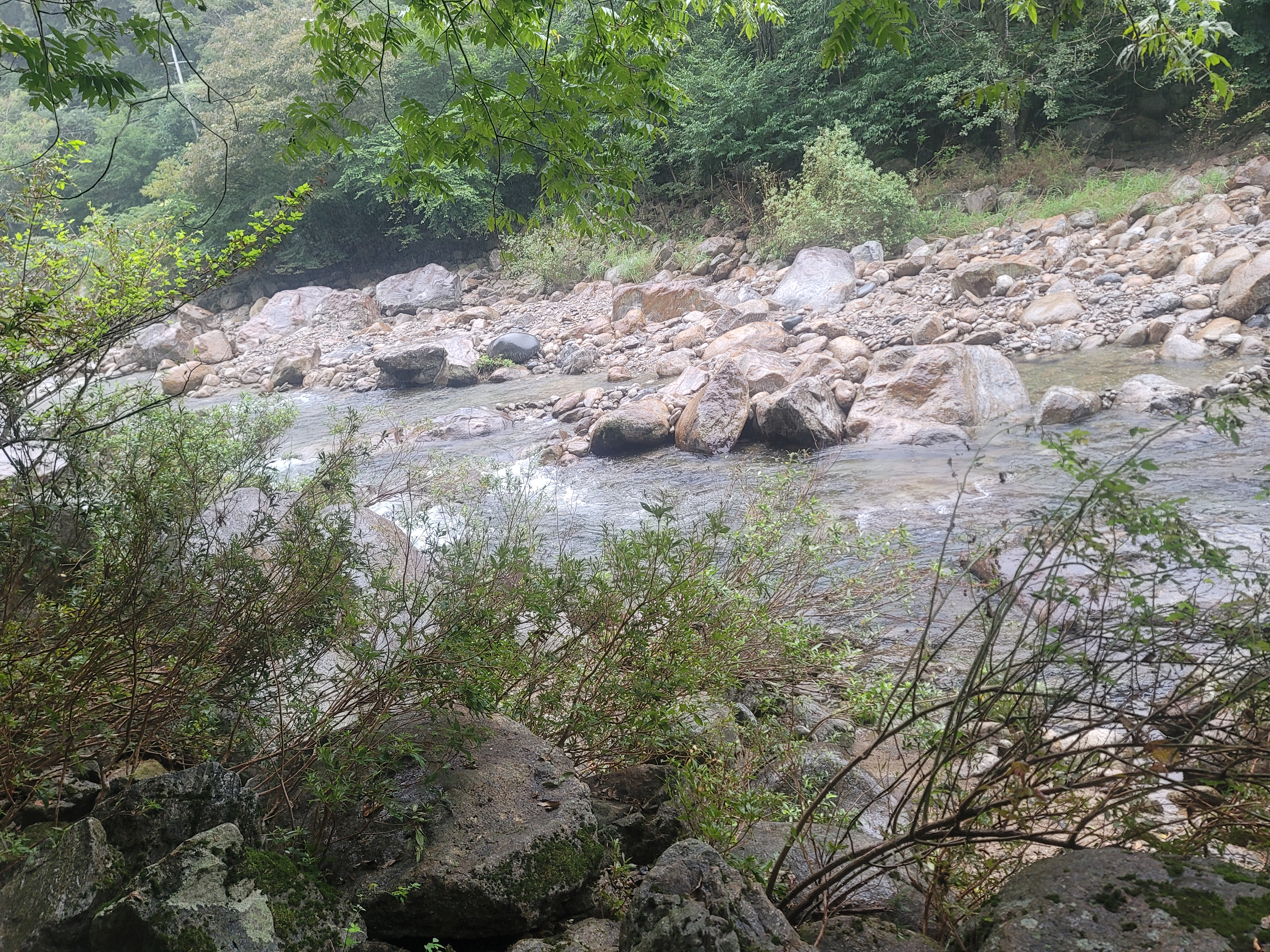 계곡에서 알탕을 하는데 비가 갑자기 많이 쏟아져 식당으로 피신