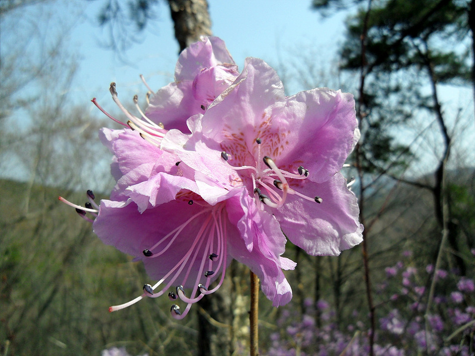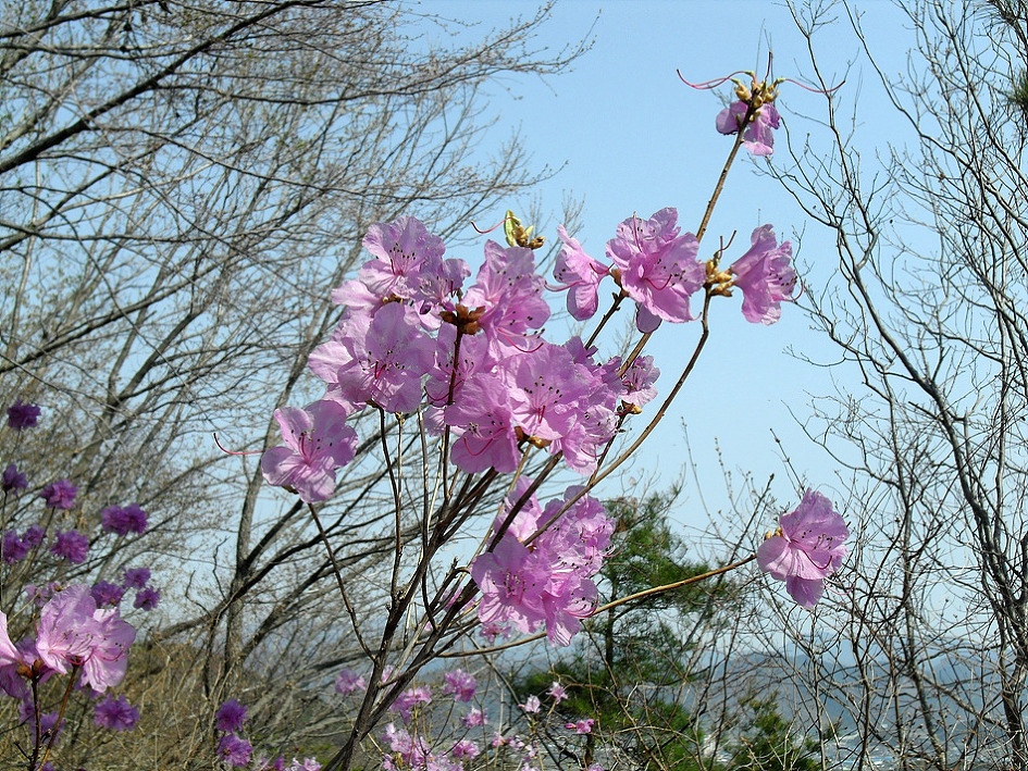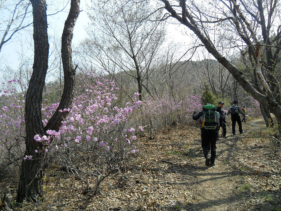 ↑ 진달래가 만발한 산행로를 따라