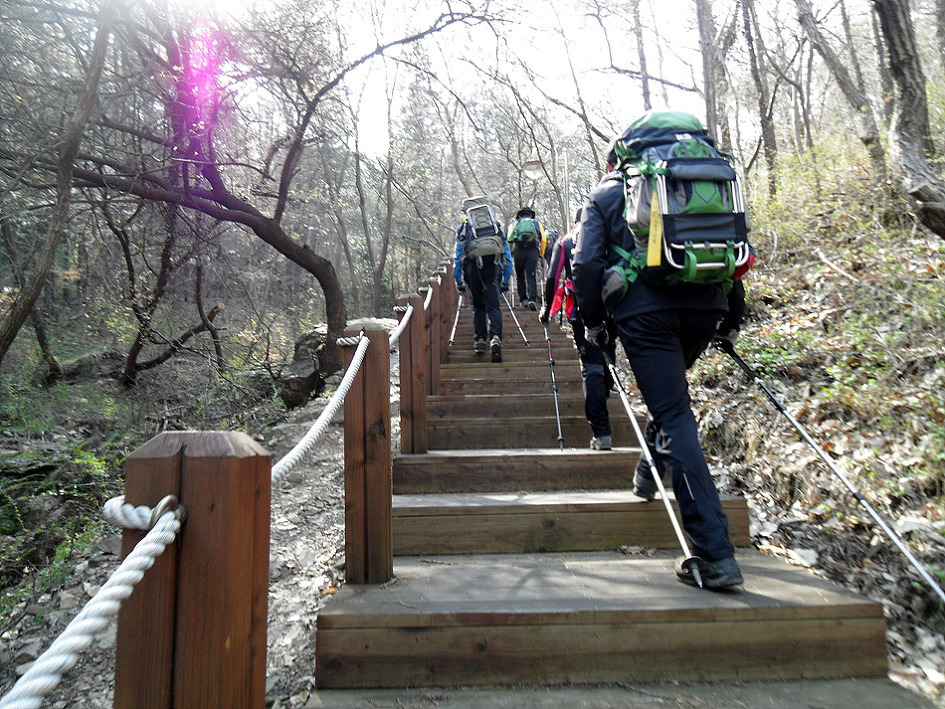↑ 산행 시작 얼마 안되어 벌써 나무계단이 나왔습니다.