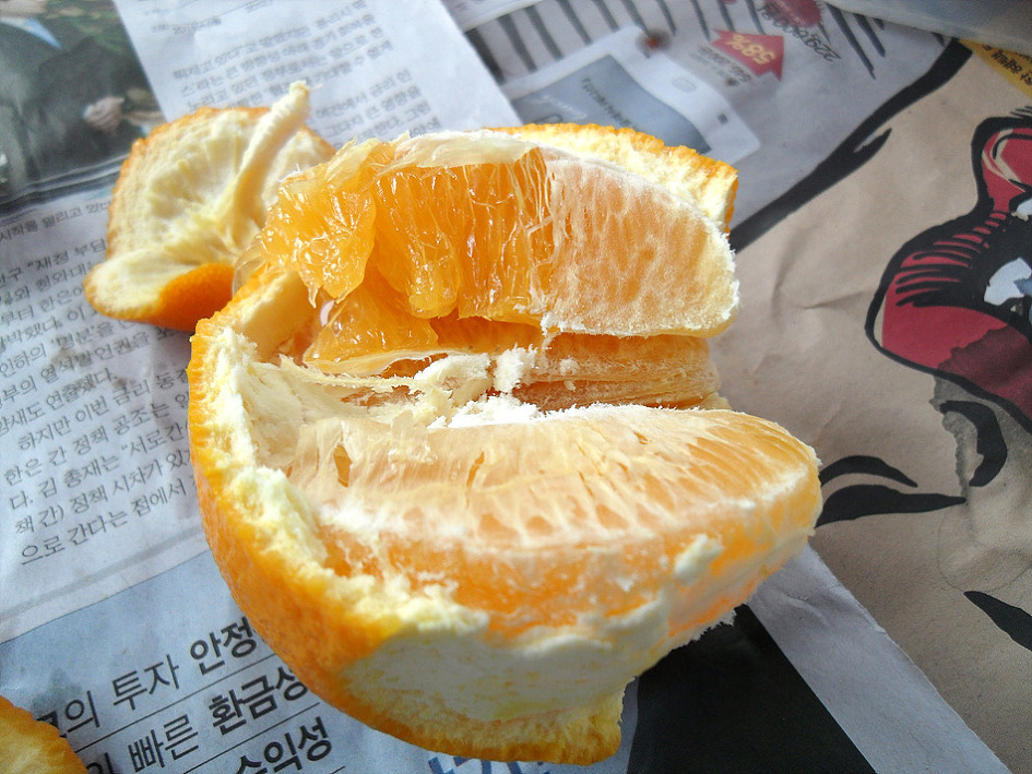 ↑ 후식으로 사과와 오렌지를 먹고