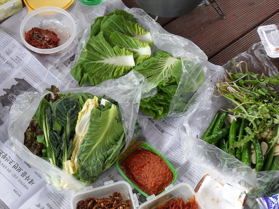 ↑ 오리주물럭을 만들어 상추에다 싸서