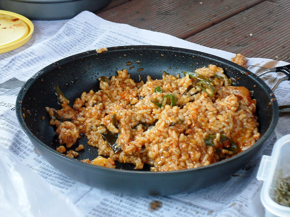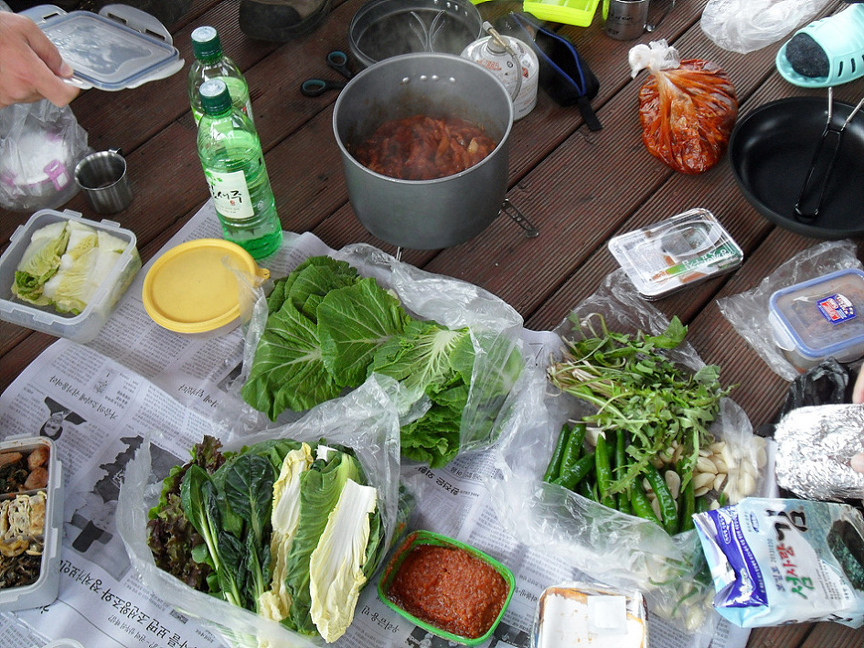 ↑ 밥도 즉석에서 해서 비빔밥을 만들어 먹고...