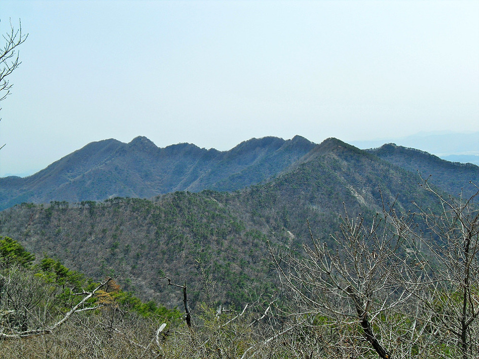 ↑ 귀바위에서 바라본 불태산 능선의 장엄한 모습