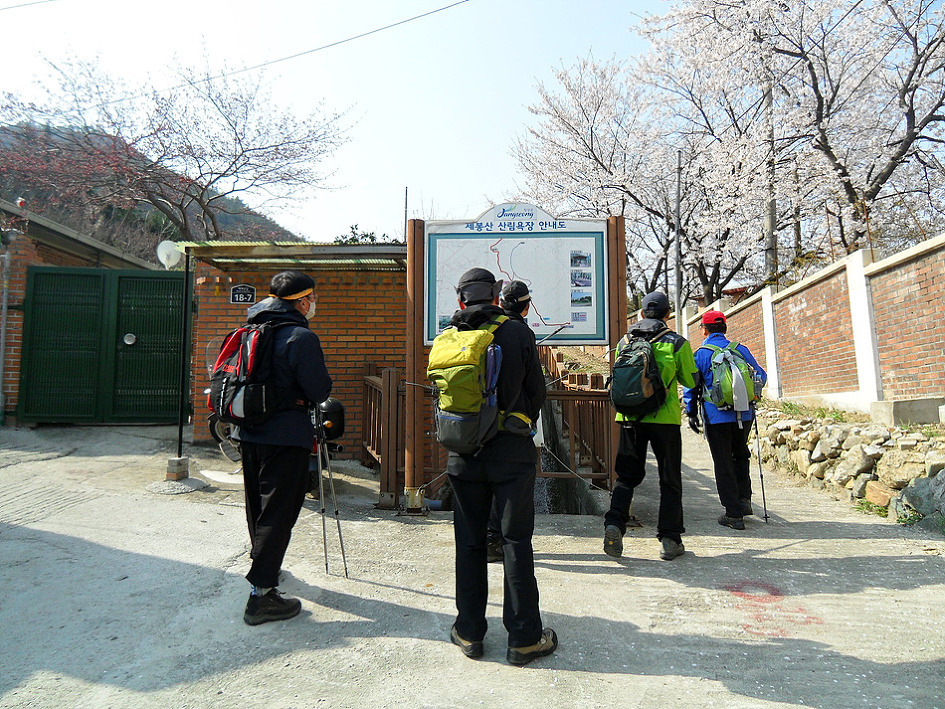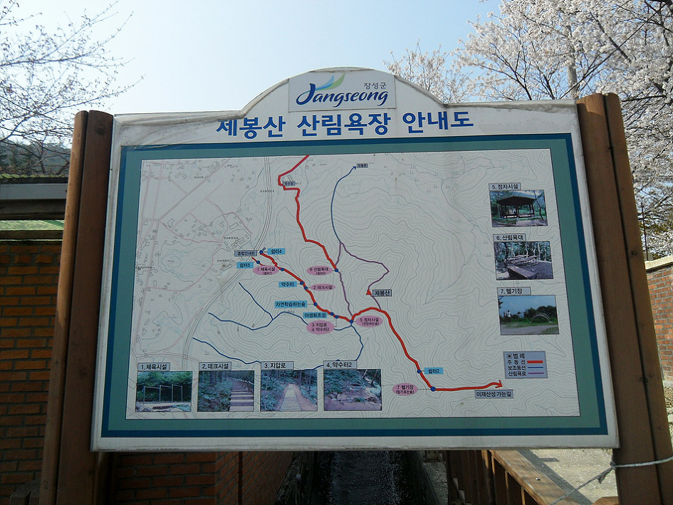 ↑ 들머리에 세워진 제봉산 산림욕장 안내도를 바라보며