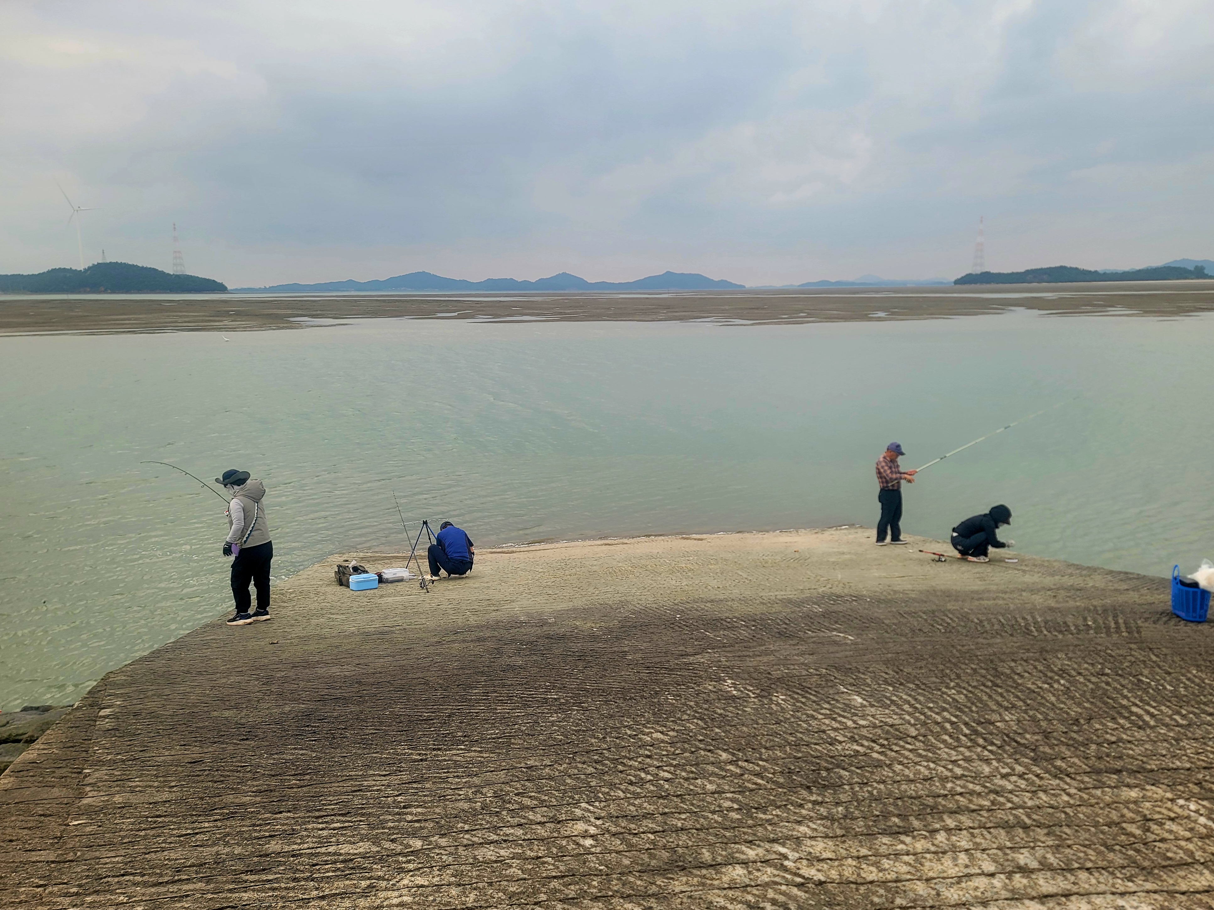 조금나루 선착장에서 낚시하는 모습