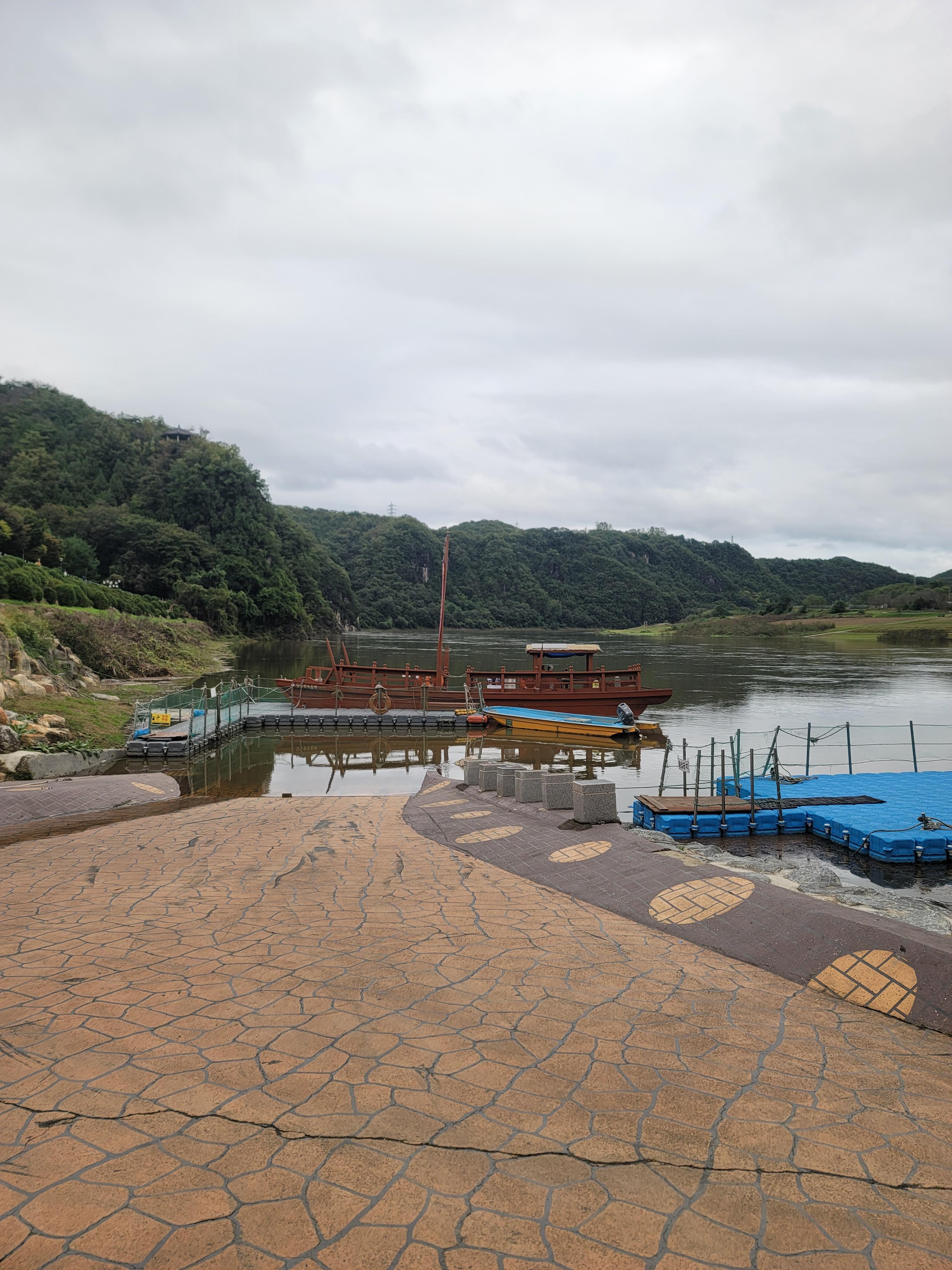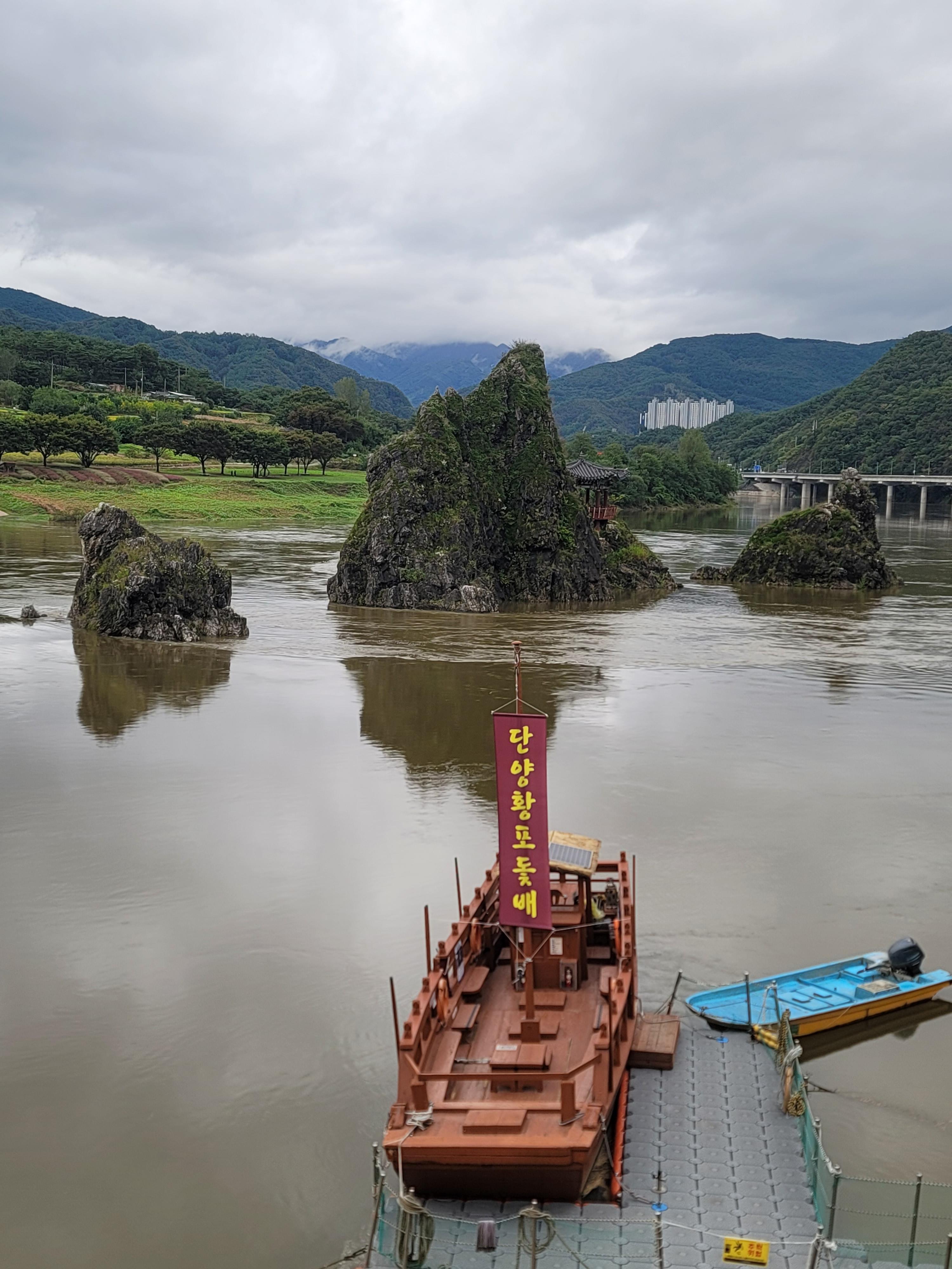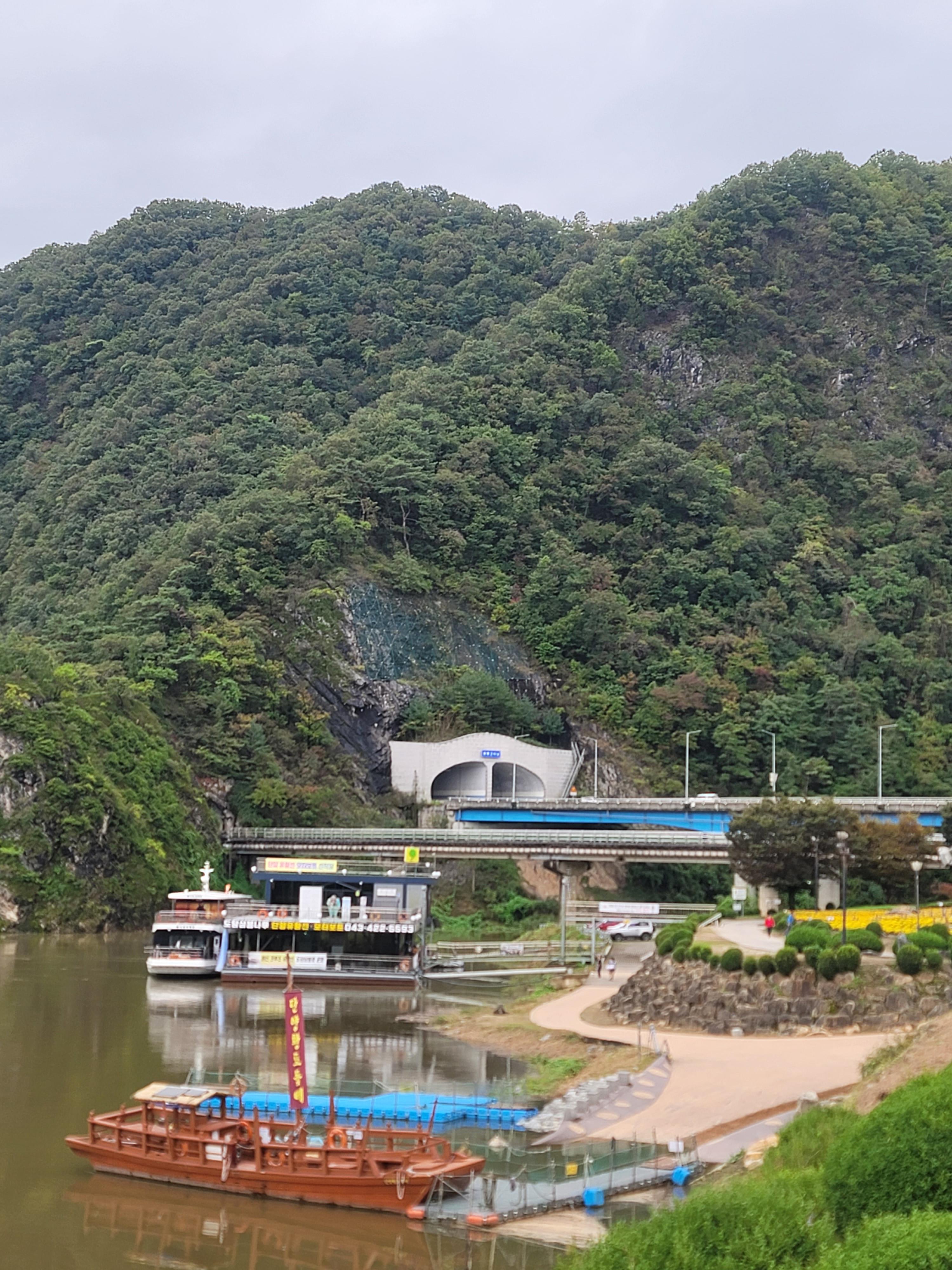 황포돛배를 승선하면 석문을 경유하여 건너편 도담 정원으로 넘어갈 수 있다.