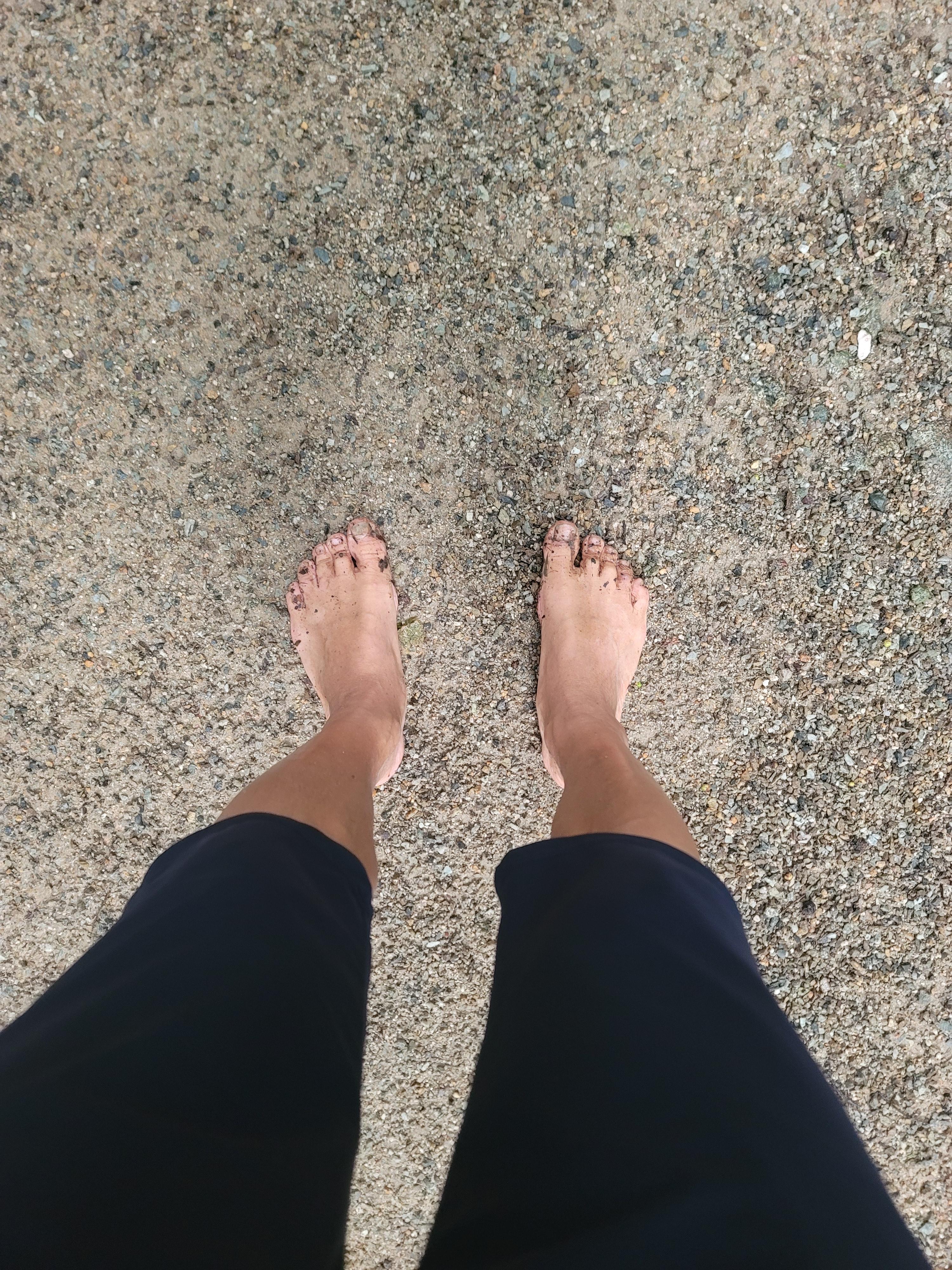 4. 속도는 일반 걷기의 2/3 정도로 느립니다. 보폭을 과하게 뻗거나, 걷고 있는 사람을 앞지를 정도의 속도로 뛴단면 지속 가능한 맨발 슬로우조깅이 아닙니다.
