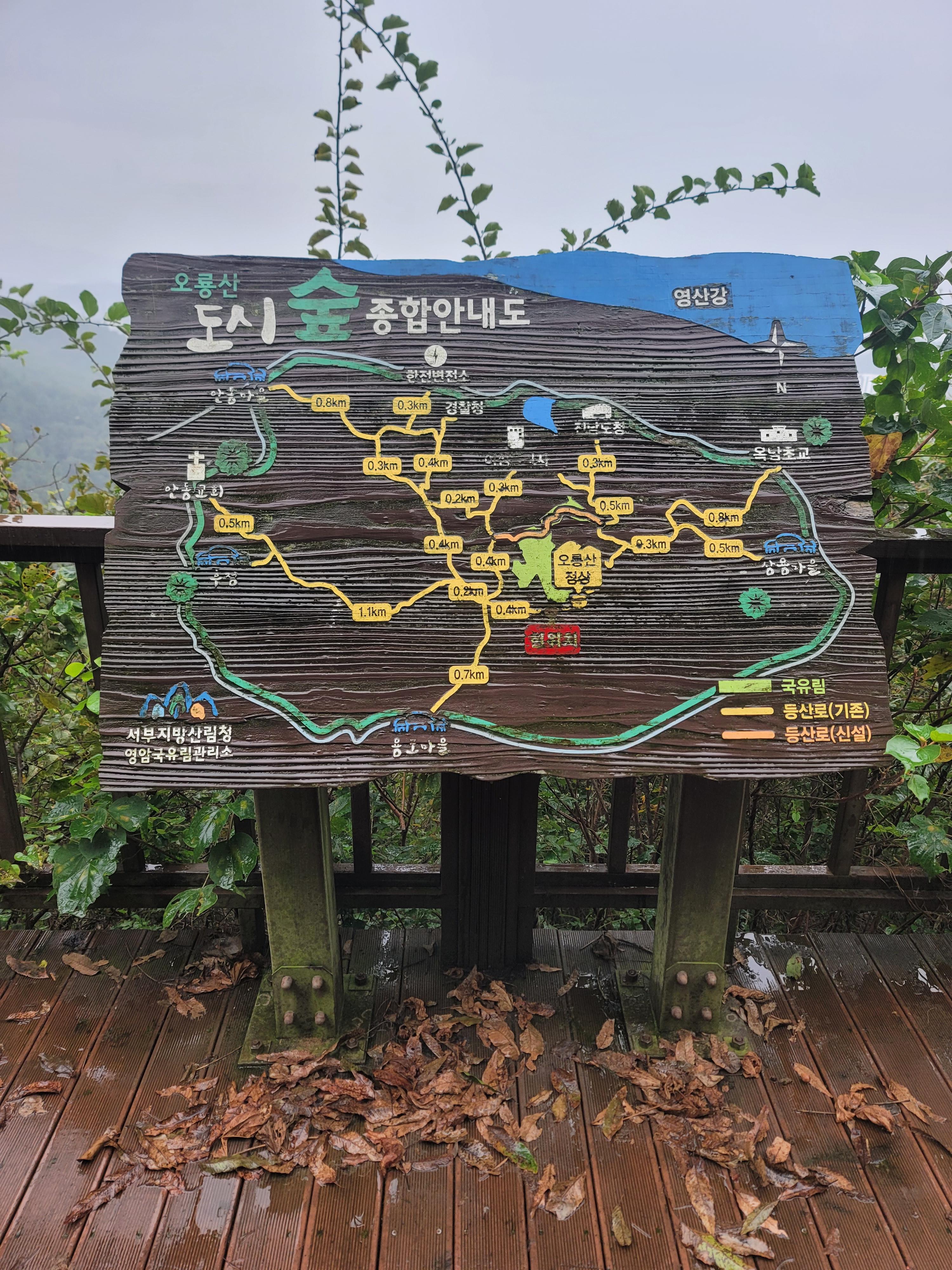비가 부슬부슬 내리는 가운데 우산을 쓰고 오룡산을 최단코스로 한 바퀴 돌았다.