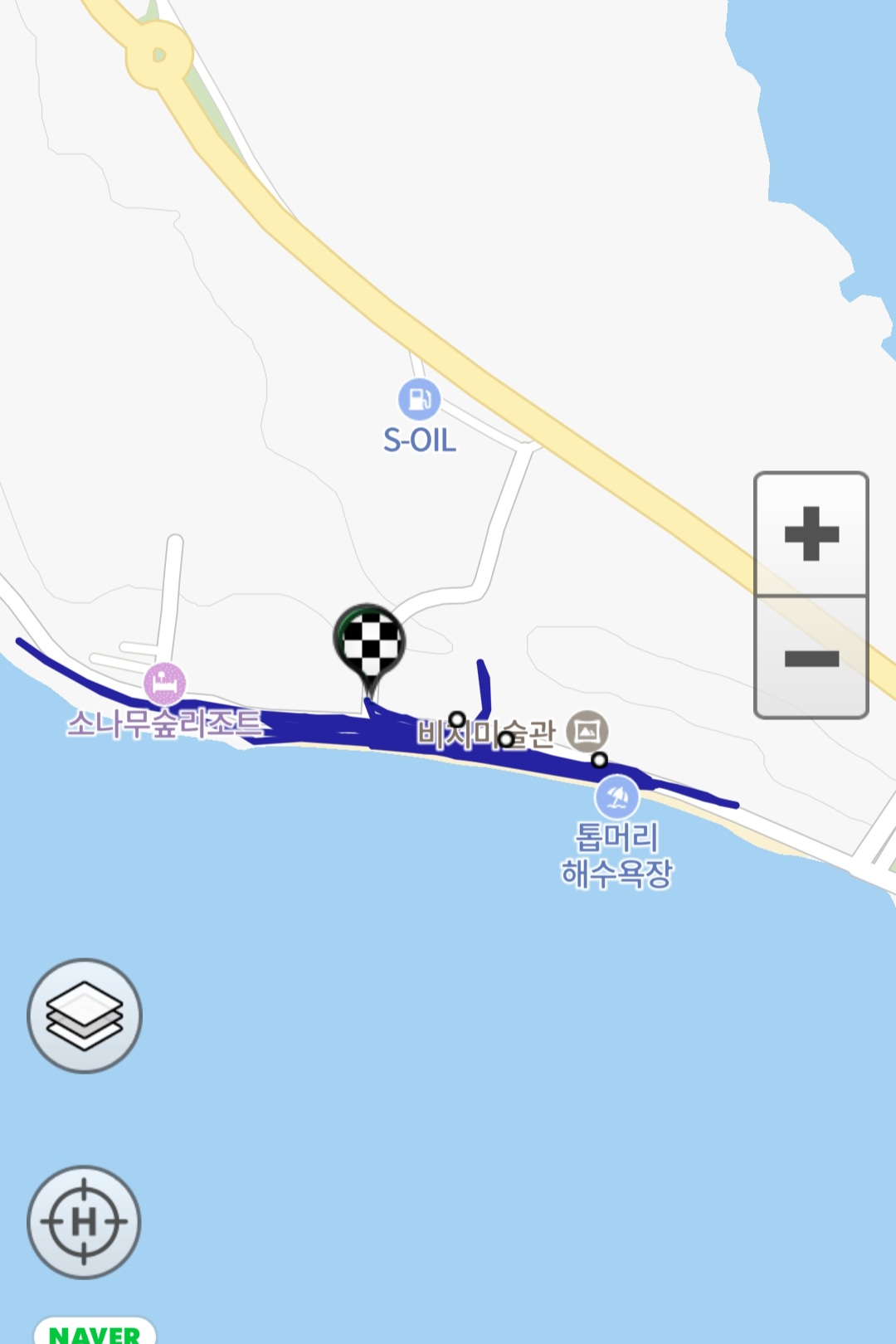 만조시간이 오래되어 모래사장만 걷고 왔다.