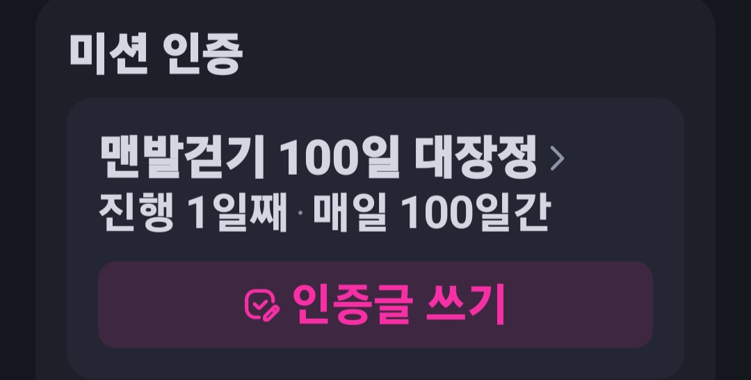 "맨발걷기 100일대장정"의 "인증글쓰기"를 클릭하시고