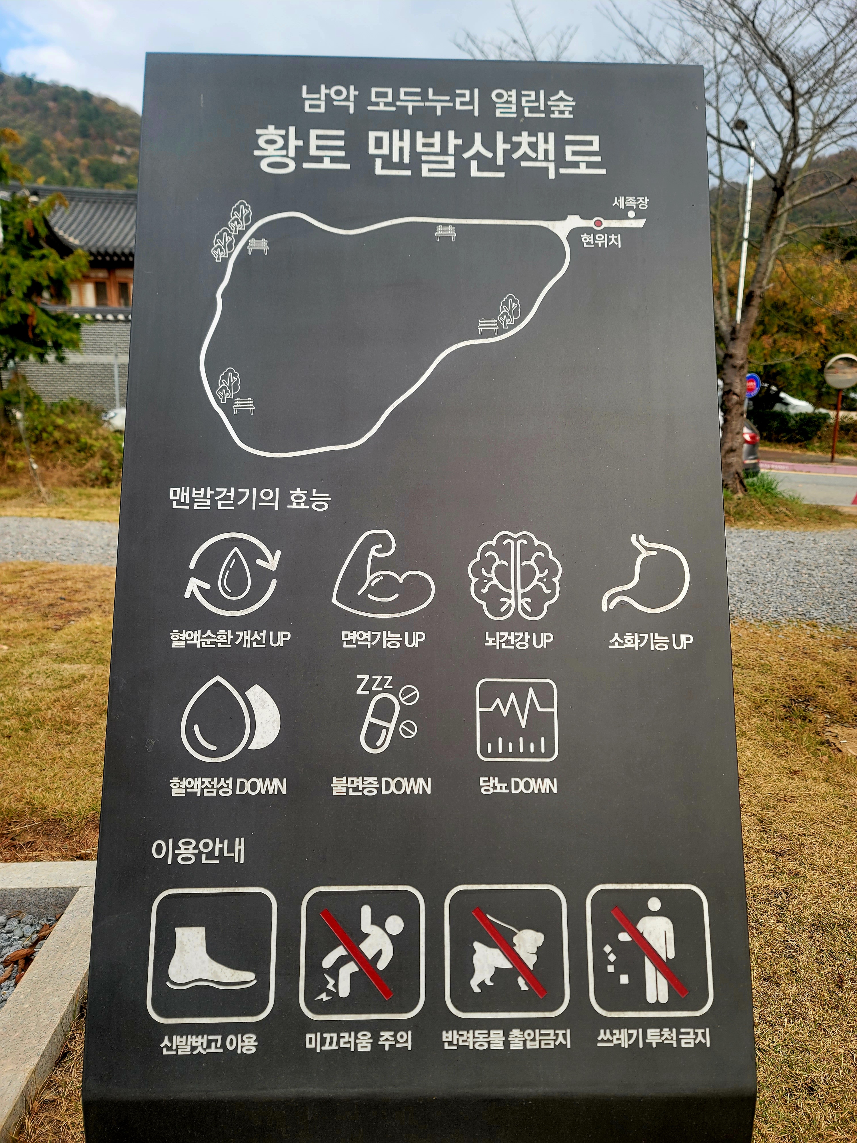 ○오룡산 산행 후에는 남악 모두누리열린숲 황토산책로를 걸었으나 땅이 굳어 기분이 별로였음