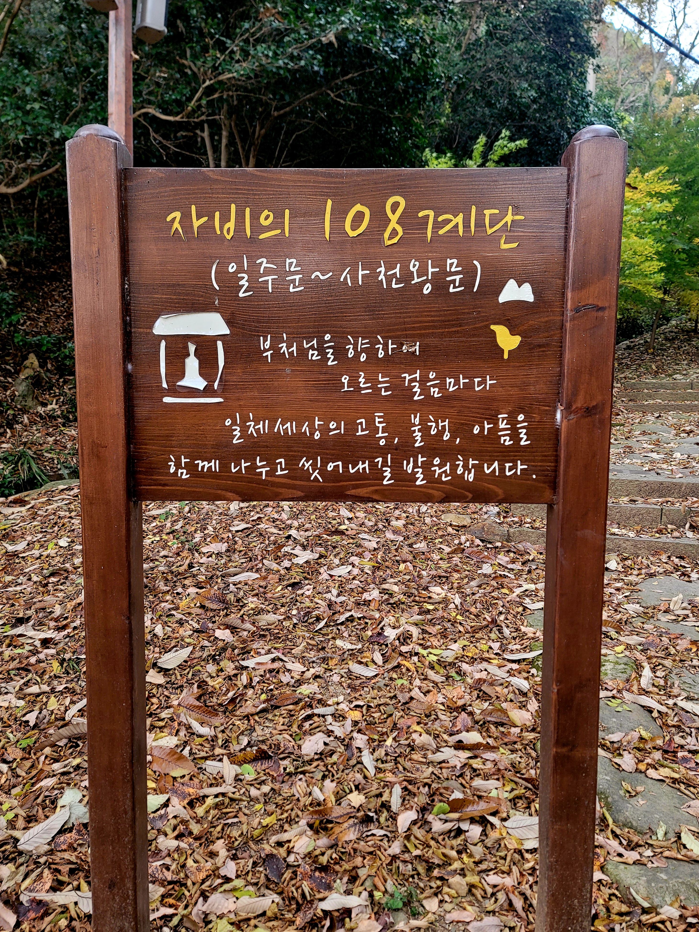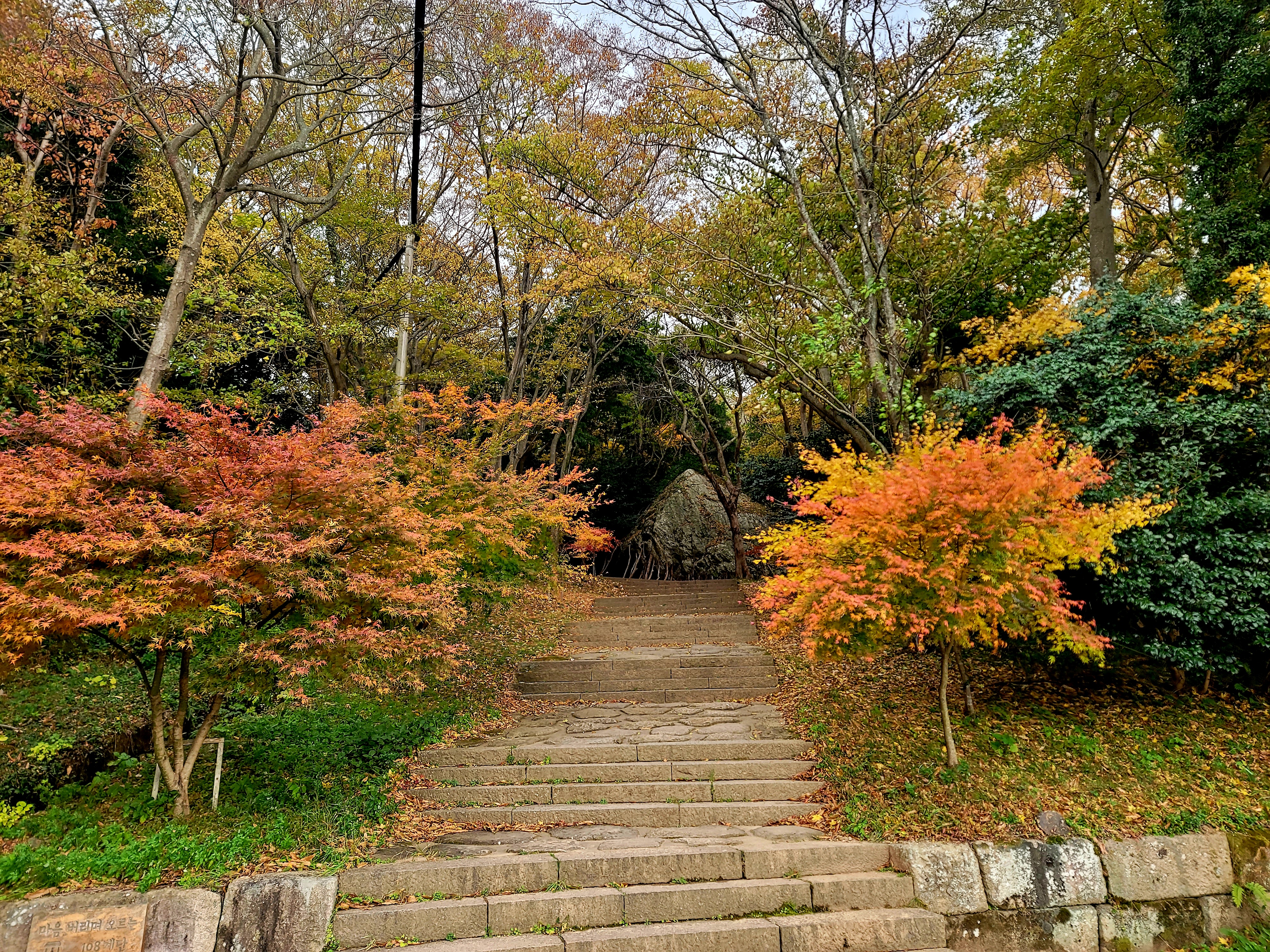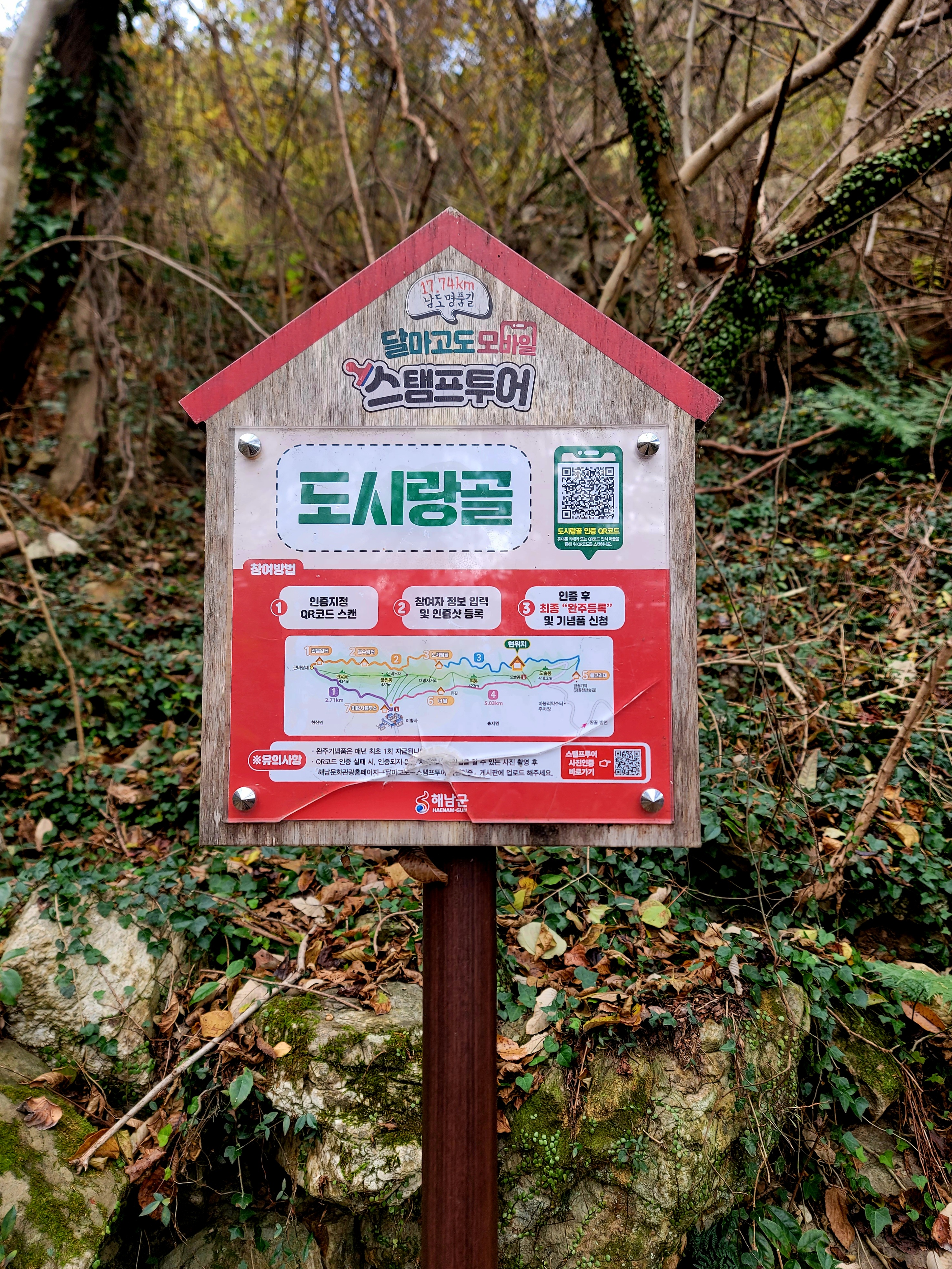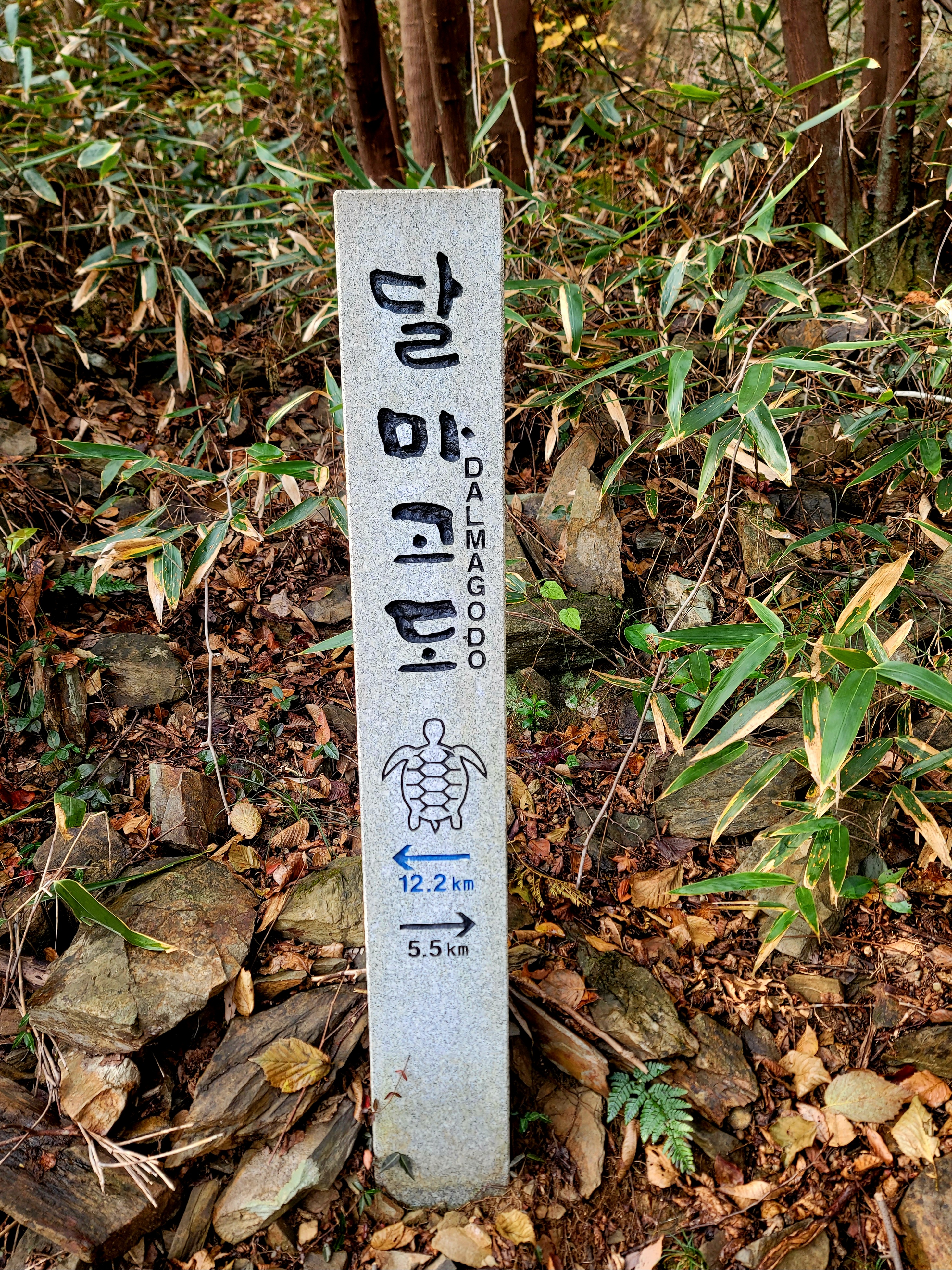 그러나 필자는 미황사~달마산 정상~달마고도~도솔암~미황사 코스를 맨발로 홀로 걸으며 단풍 구경도 실컷 하고 인증샷도 많이 남기면서 여유롭게 1시간 30분 전에 목적지에 도착하여 미황사도 전부 구경한 알찬 산행이었다.