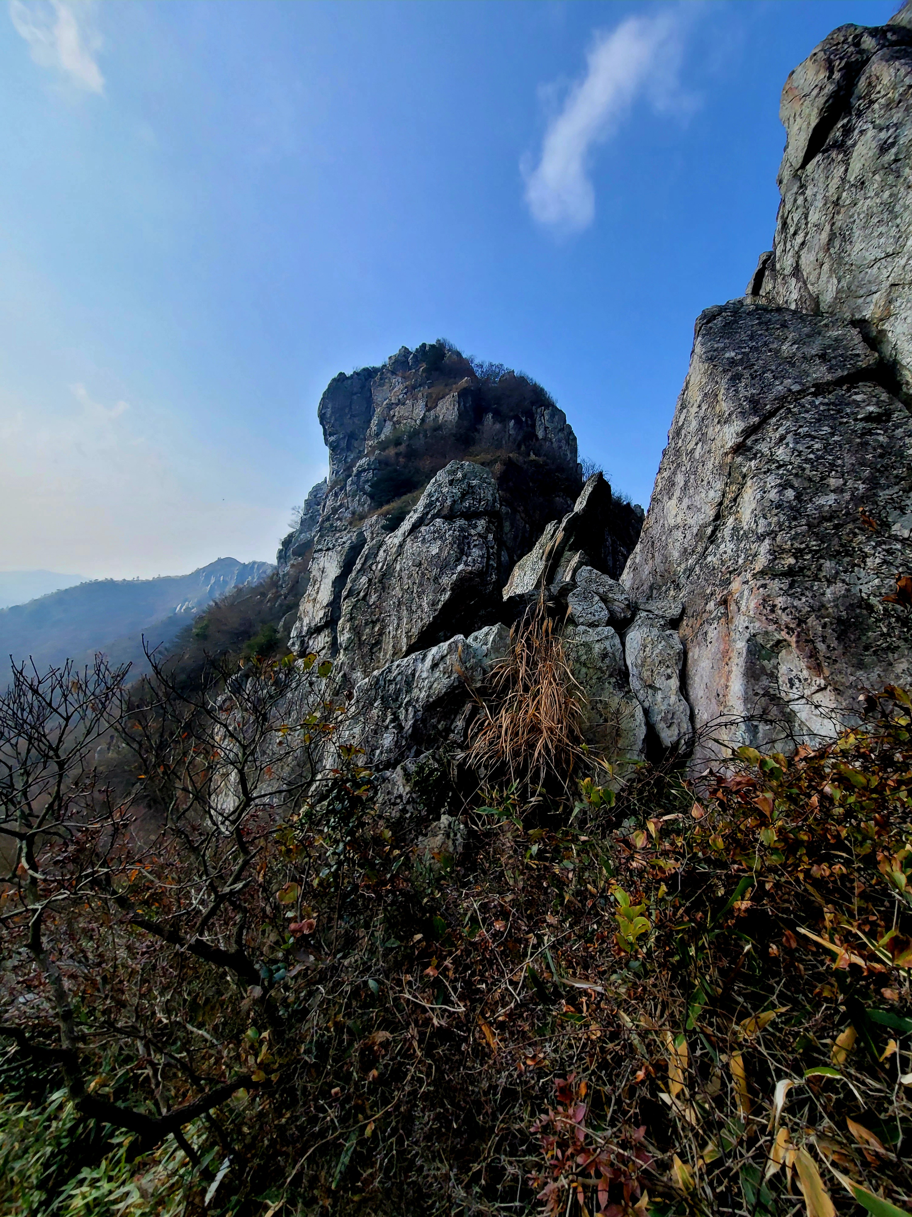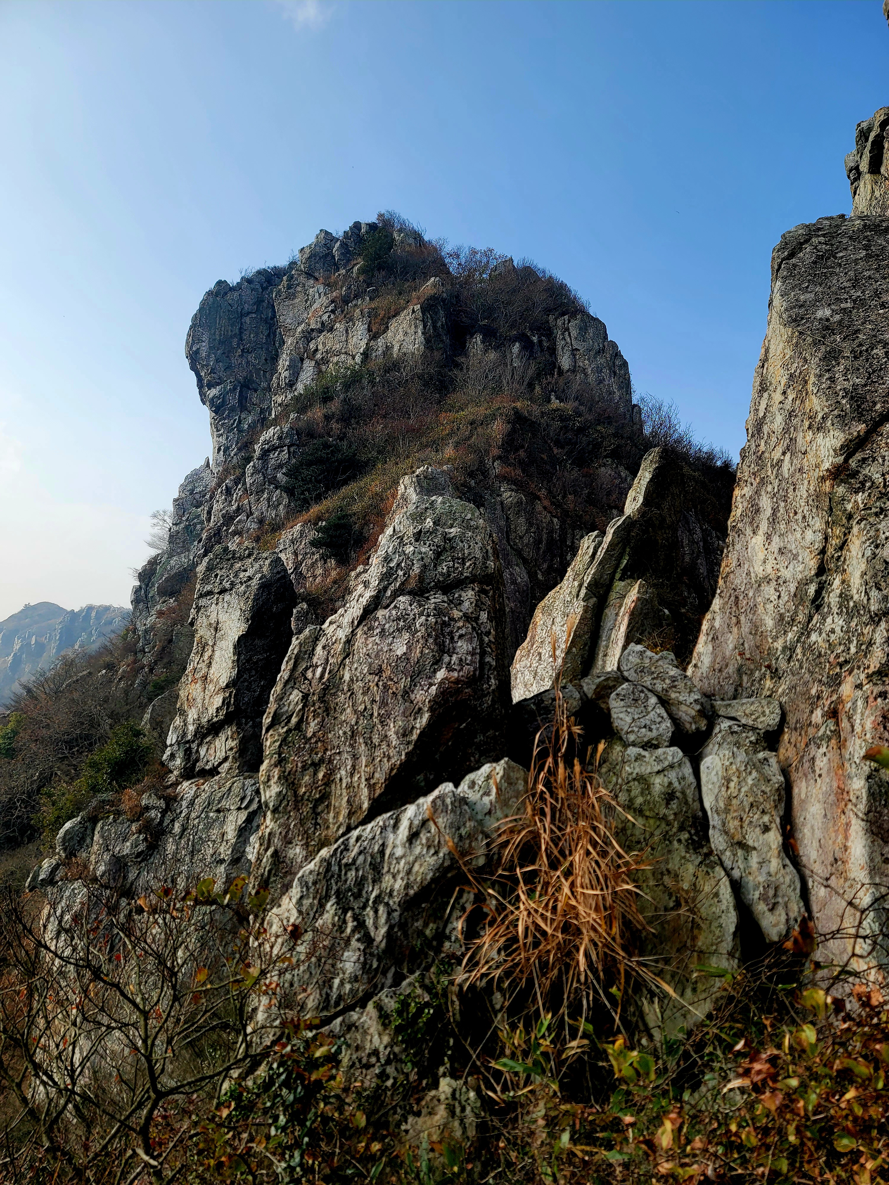 절에서 산 정상까지는 약 1시간 거리로 기암괴석이 들쭉날쭉 장식하고 있어 거대한 수석을 세워 놓은 듯 수려하기 그지없다.