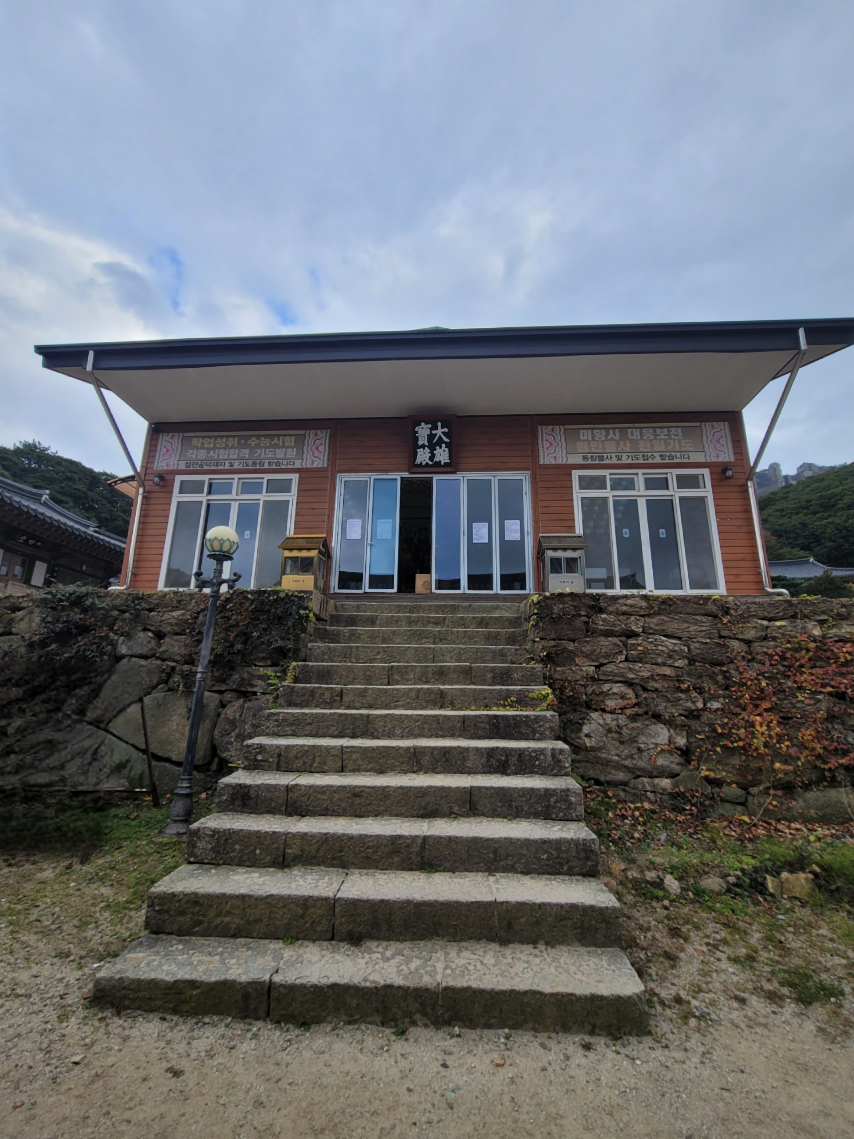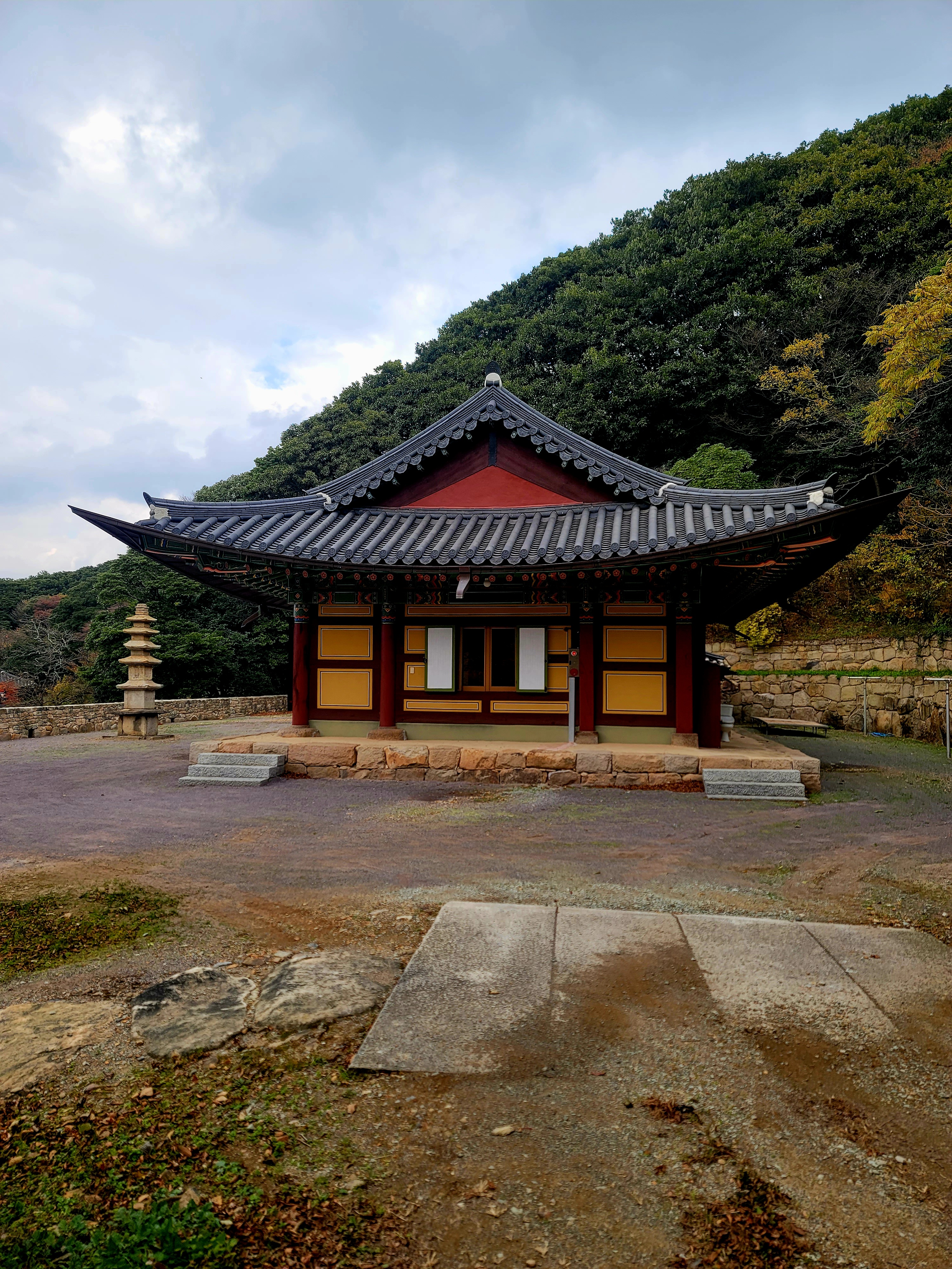 우선 뒤편의 산자락과 잘 어울리는 위치에 알맞은 규모로 자리 잡은 절터와 대웅보전의 앉음새에서 편안함이 느껴진다.
