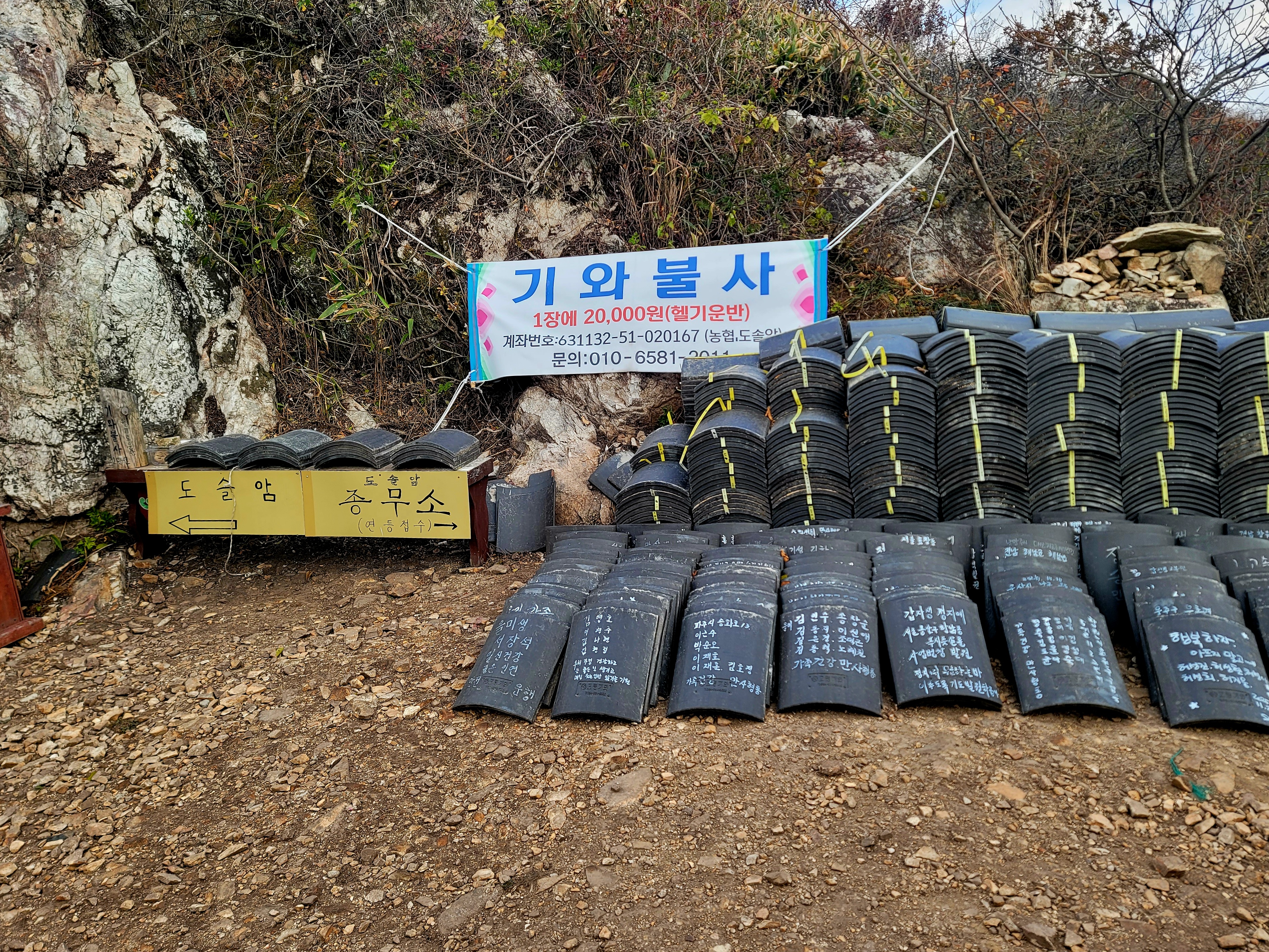 이렇게 짧은 기간에 1800장의 흙 기와를 손수 들어 올린 뜻있는 많은 분들의 정성과 공력도 함께 들어있는 도솔암은 2006년 조계산 송광사 주지스님이신 현봉 큰 스님을 <증명법사>로 하여 낙성식을 가졌다.