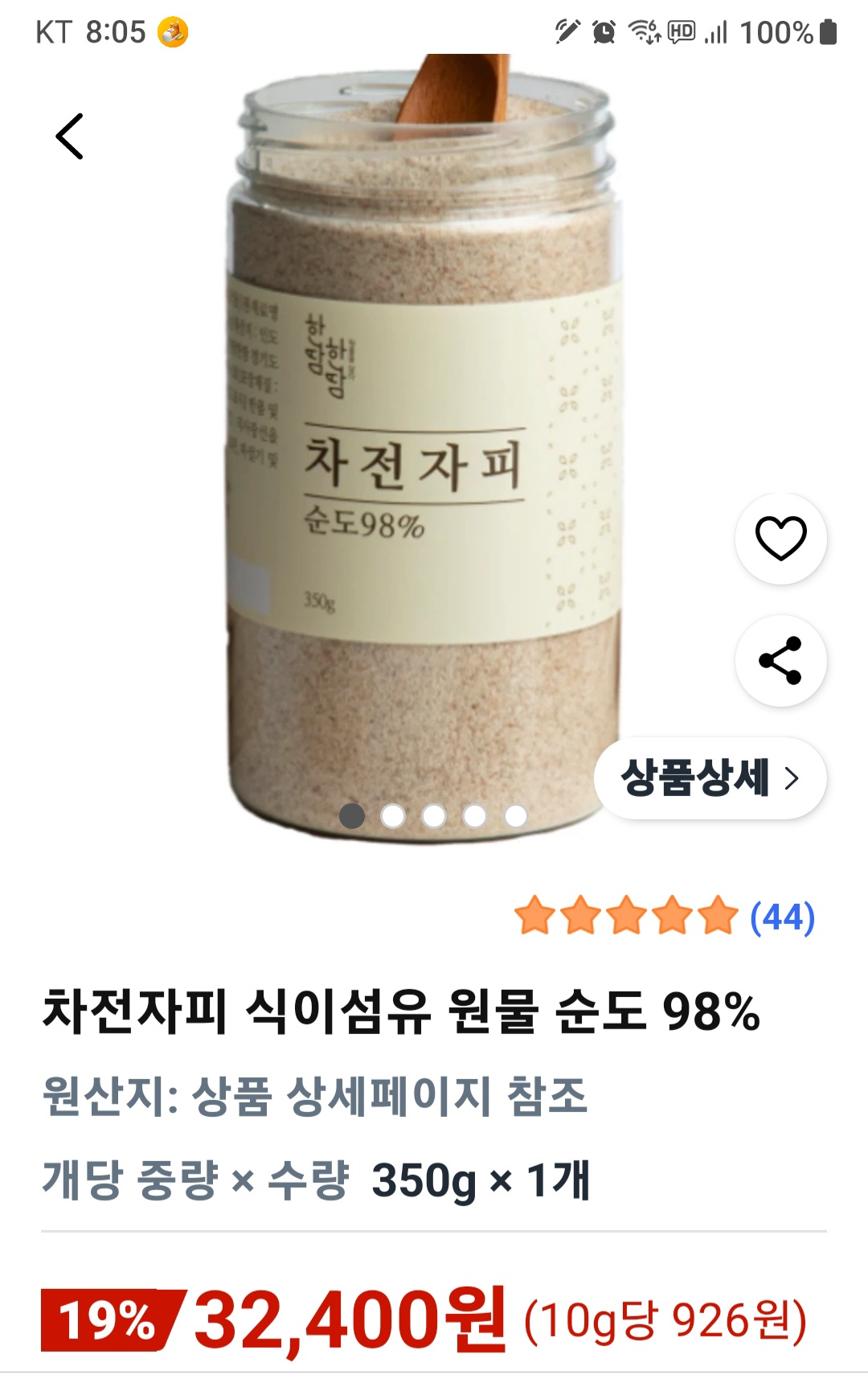 차전자피의 80% 이상은 식이섬유로 이루어져 있으며, 수용성과 불용성 식이섬유가 모두 풍부합니다.