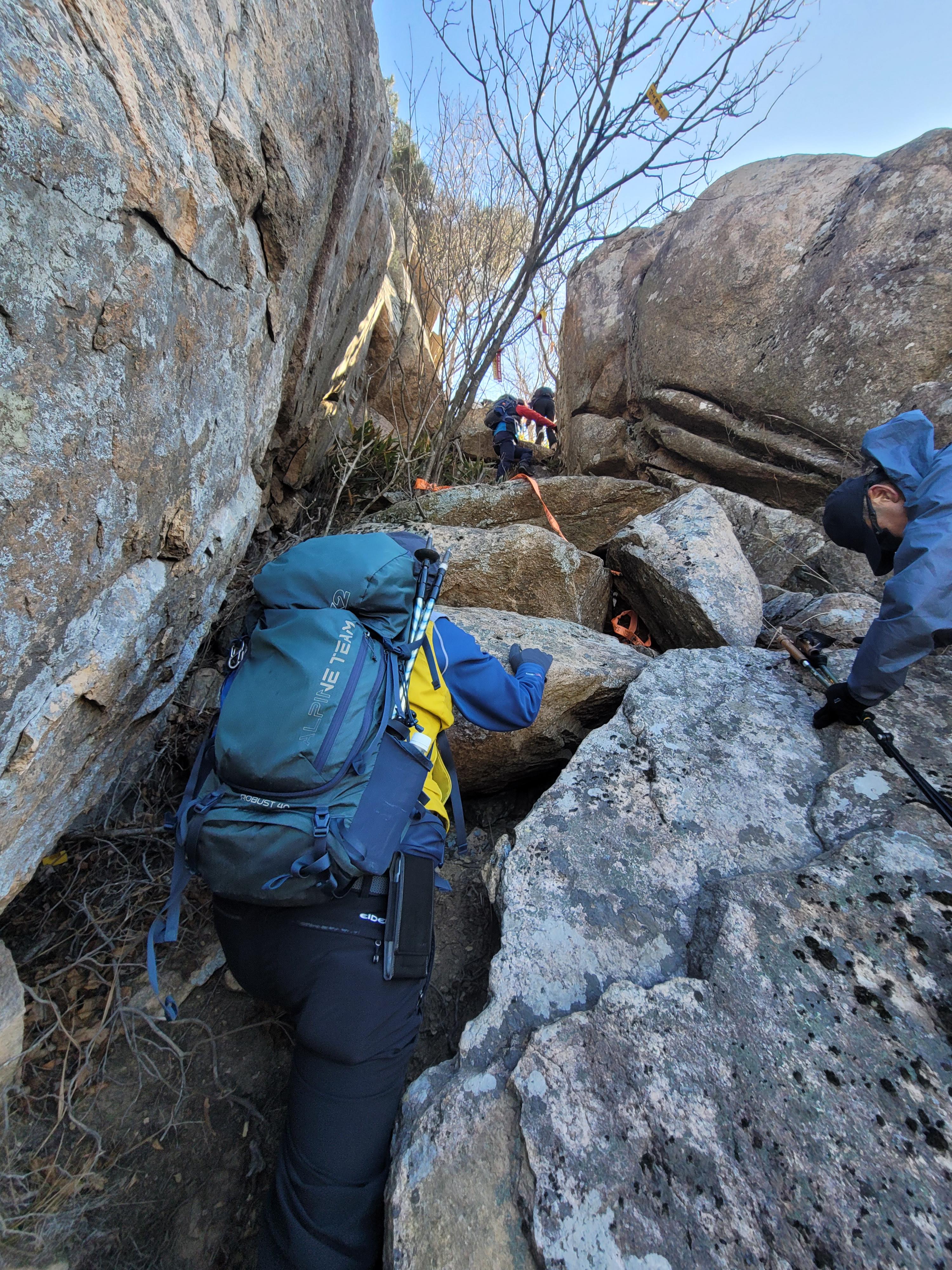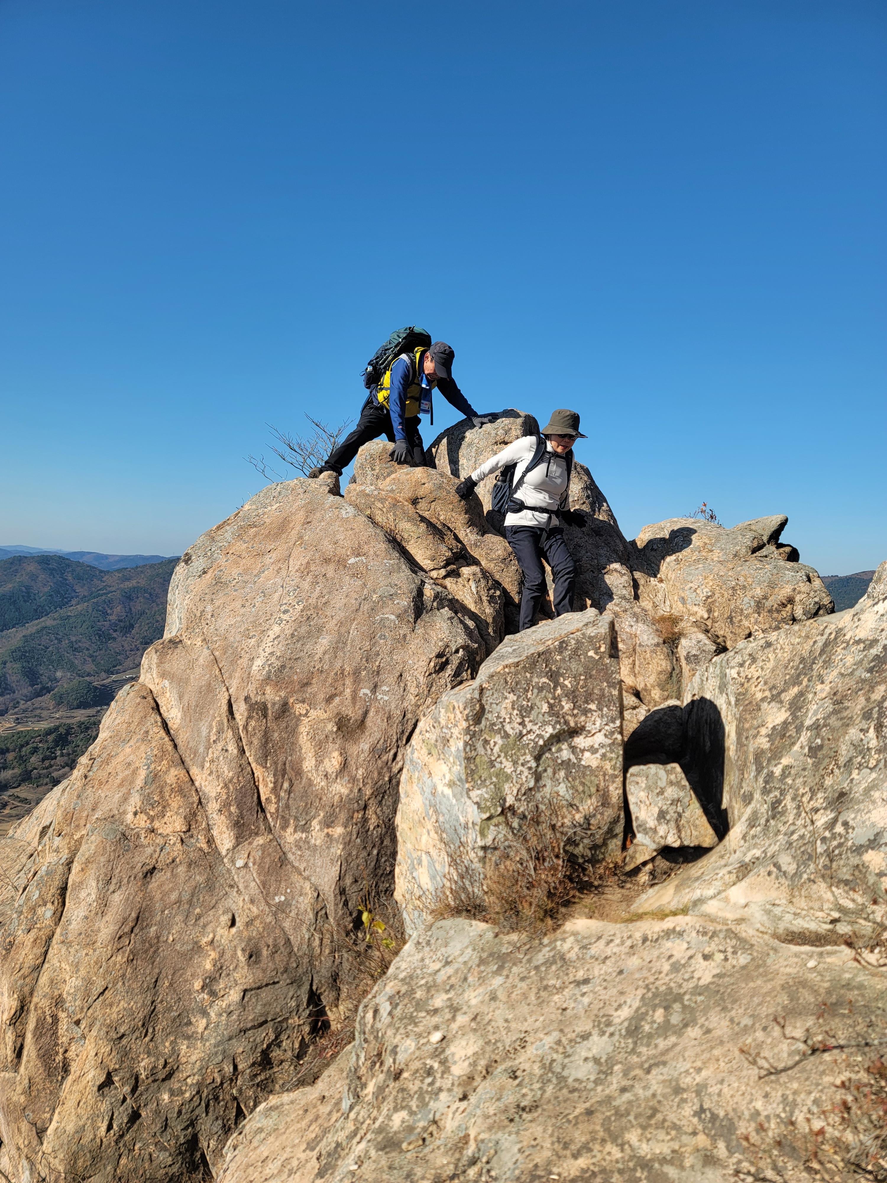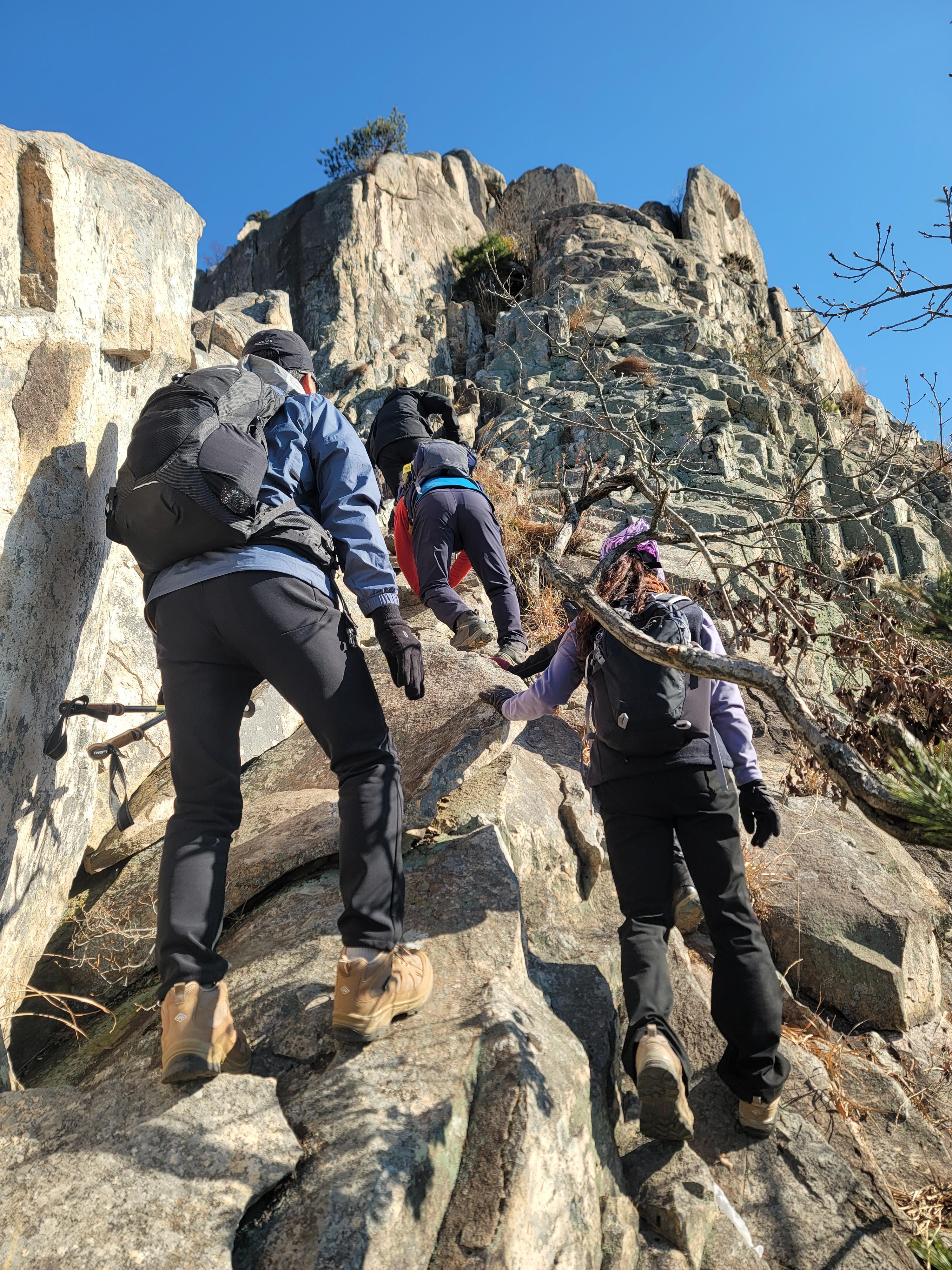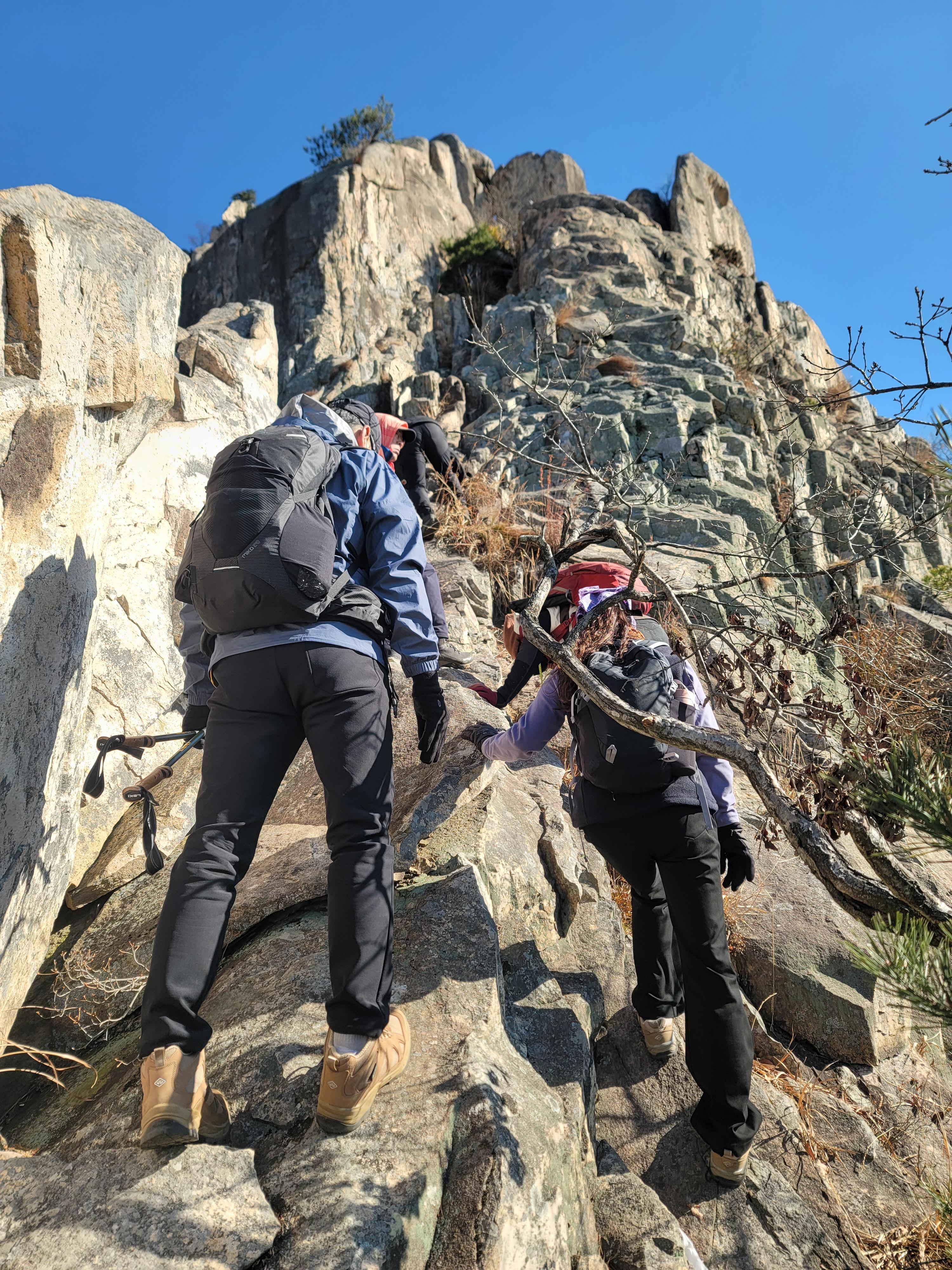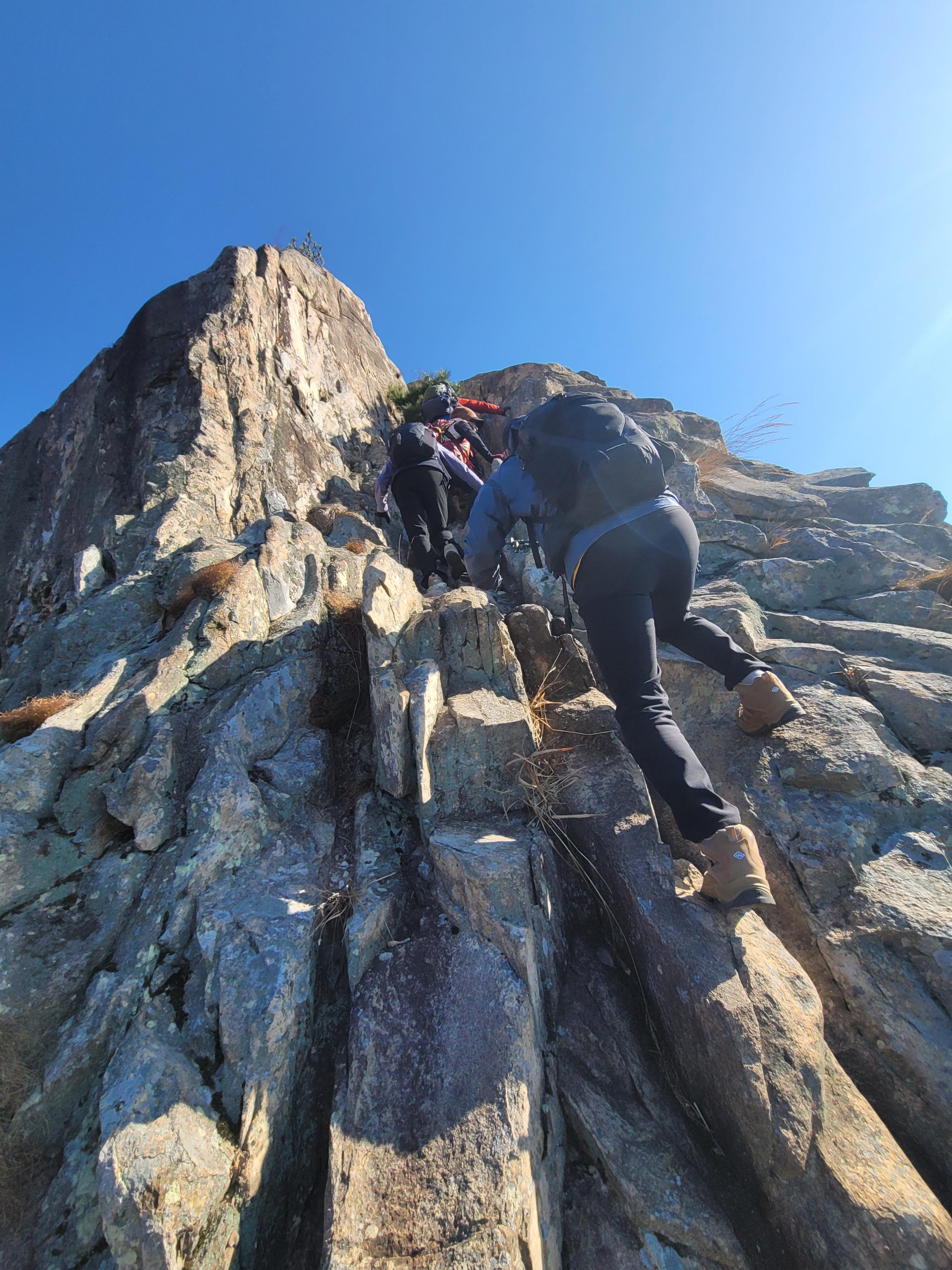 ○암릉 등반: 바위로 이루어진 험하고 날카로운 능선 구간을 주로 통과합니다.