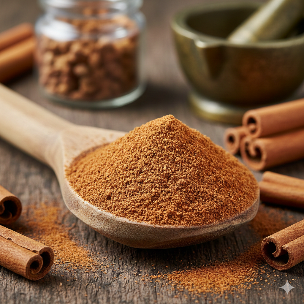 계피는 **'천연 인슐린'**이라 불릴 정도로 혈당 관리에 탁월합니다. 계피의 폴리페놀 성분이 인슐린과 유사한 작용을 하여 세포 내 에너지 생성을 돕고 혈당 수치를 낮추는 데 기여합니다.