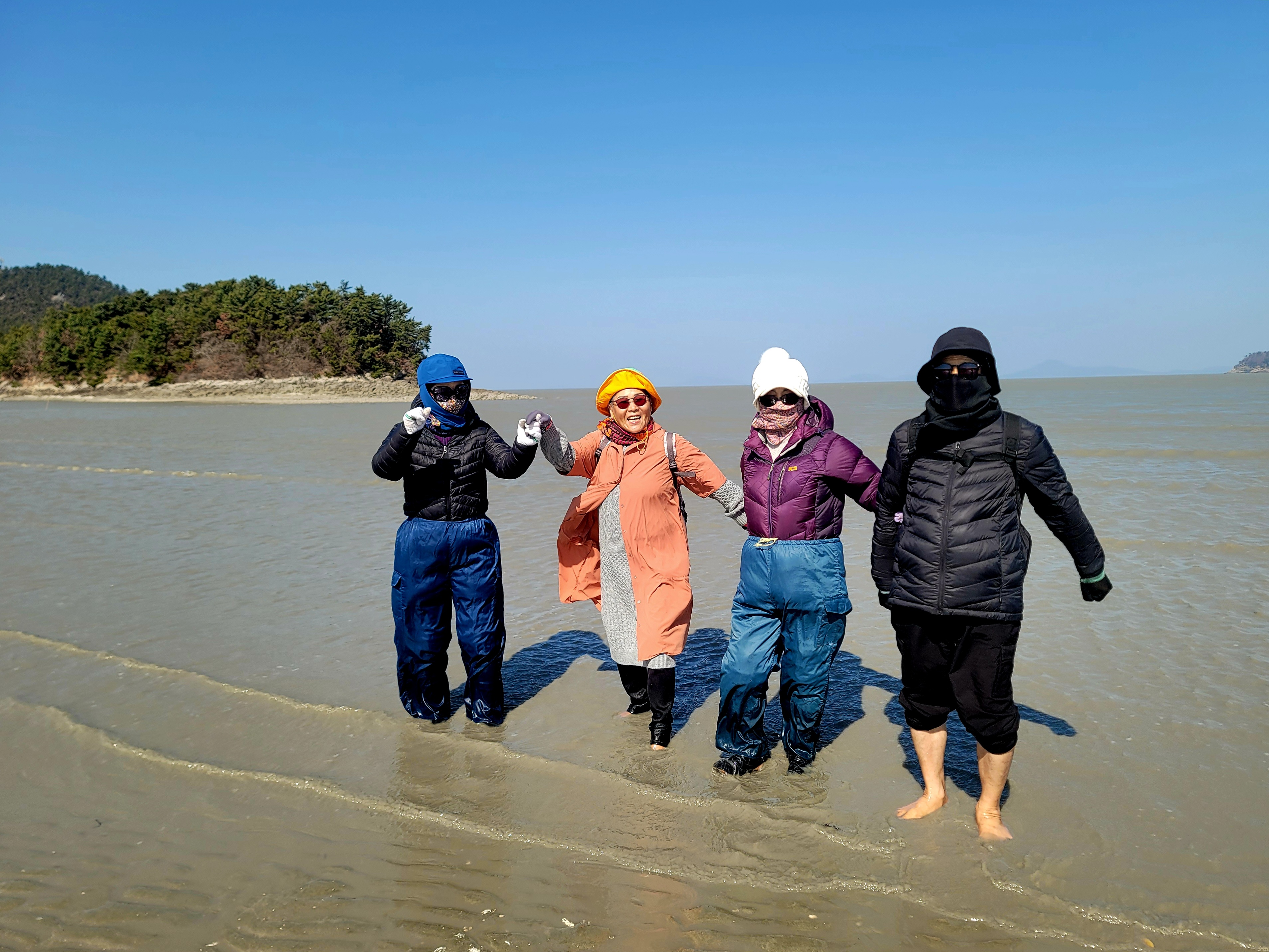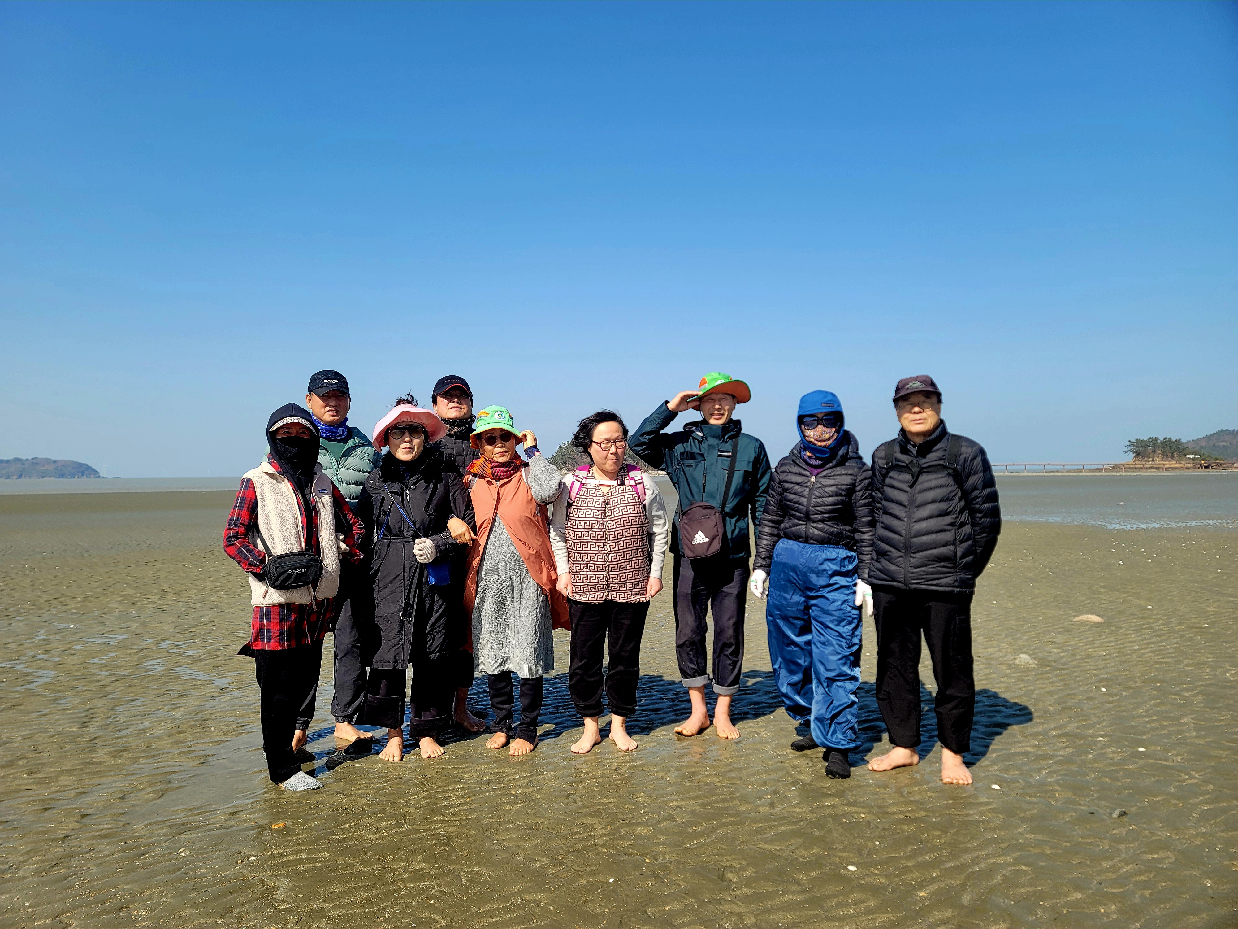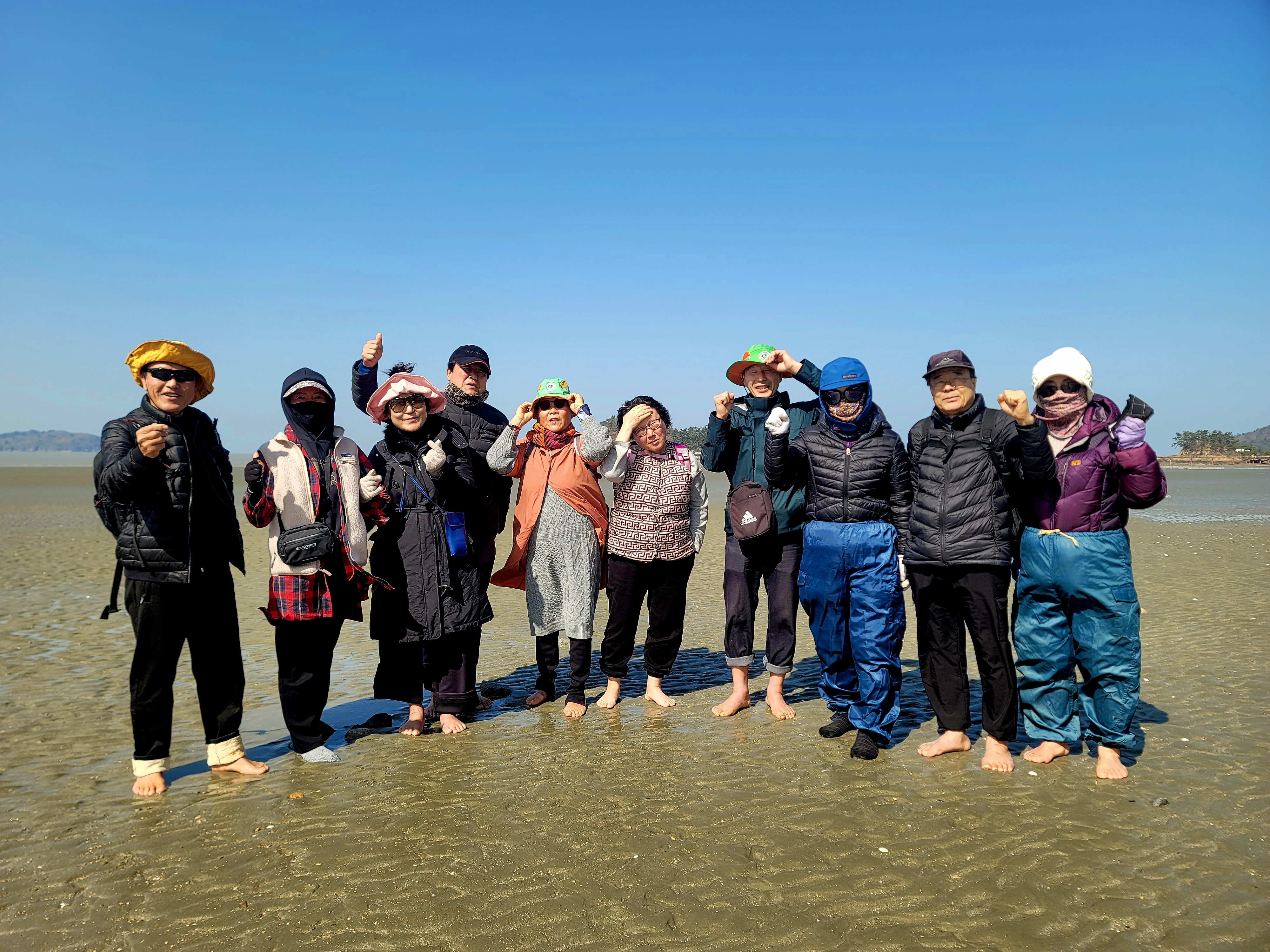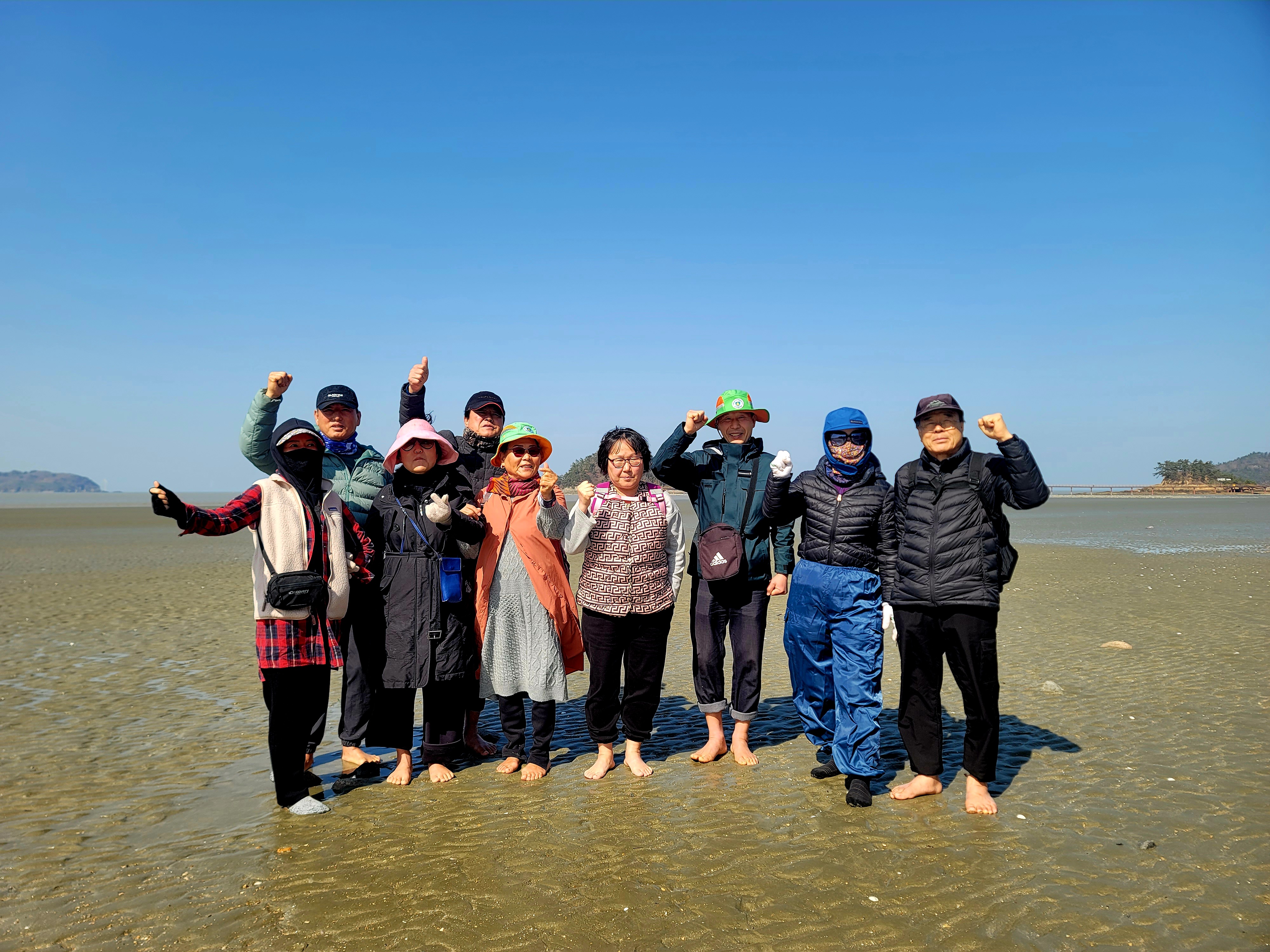둔장해변에서 약 3시간 30분 동안 맨발걷기
