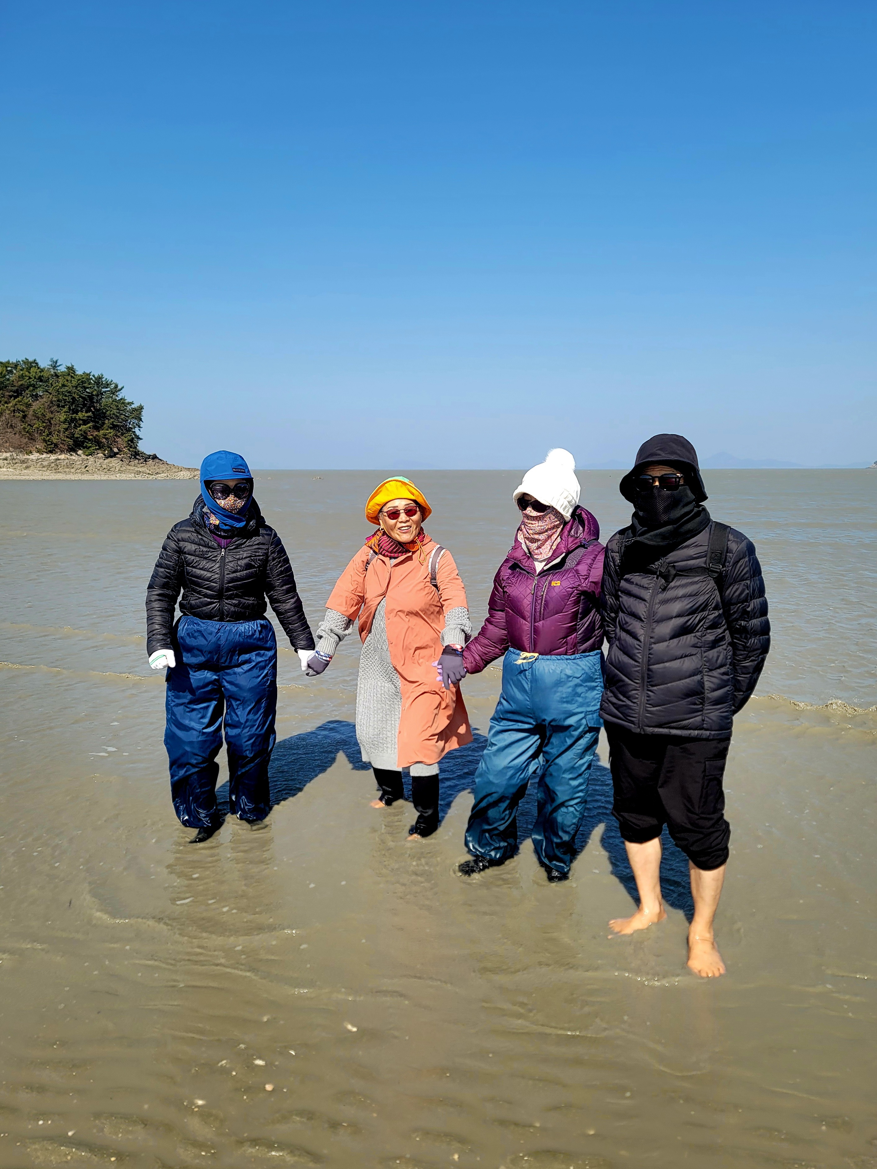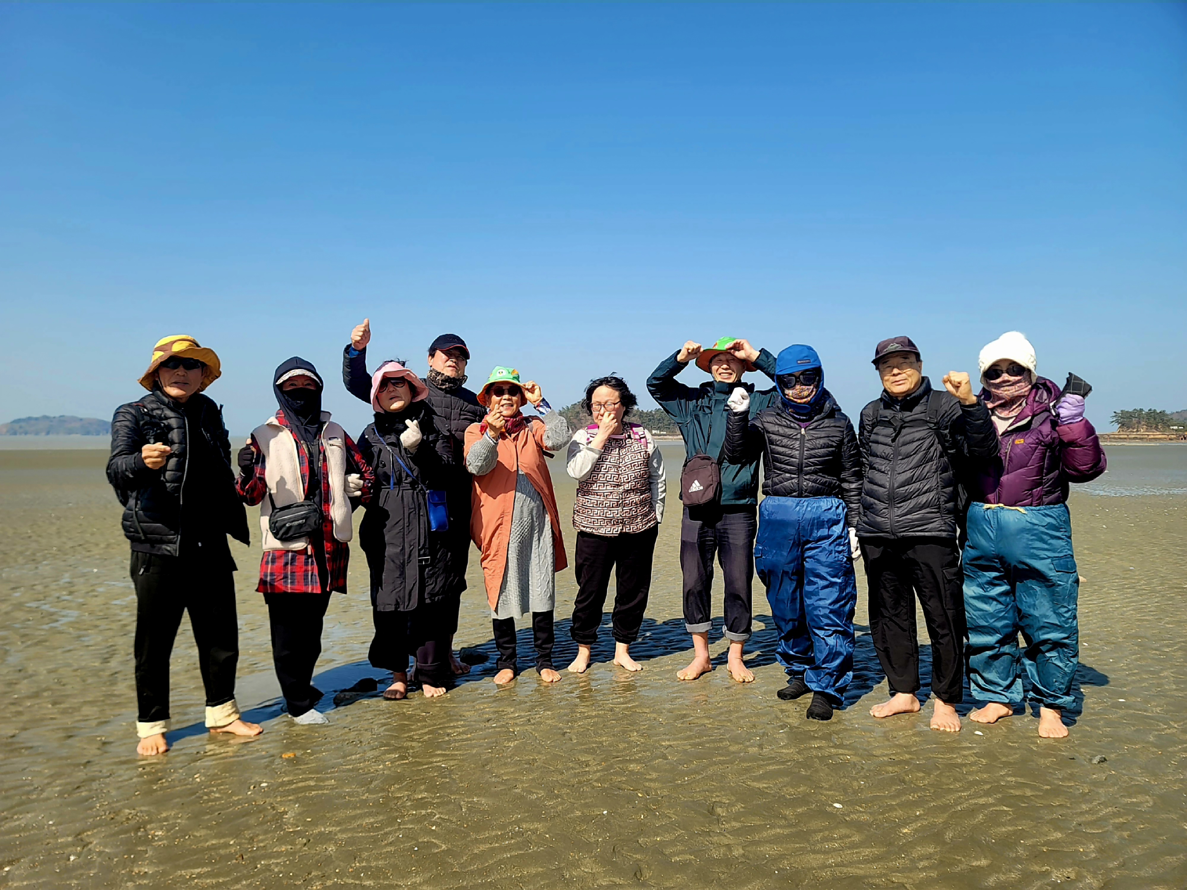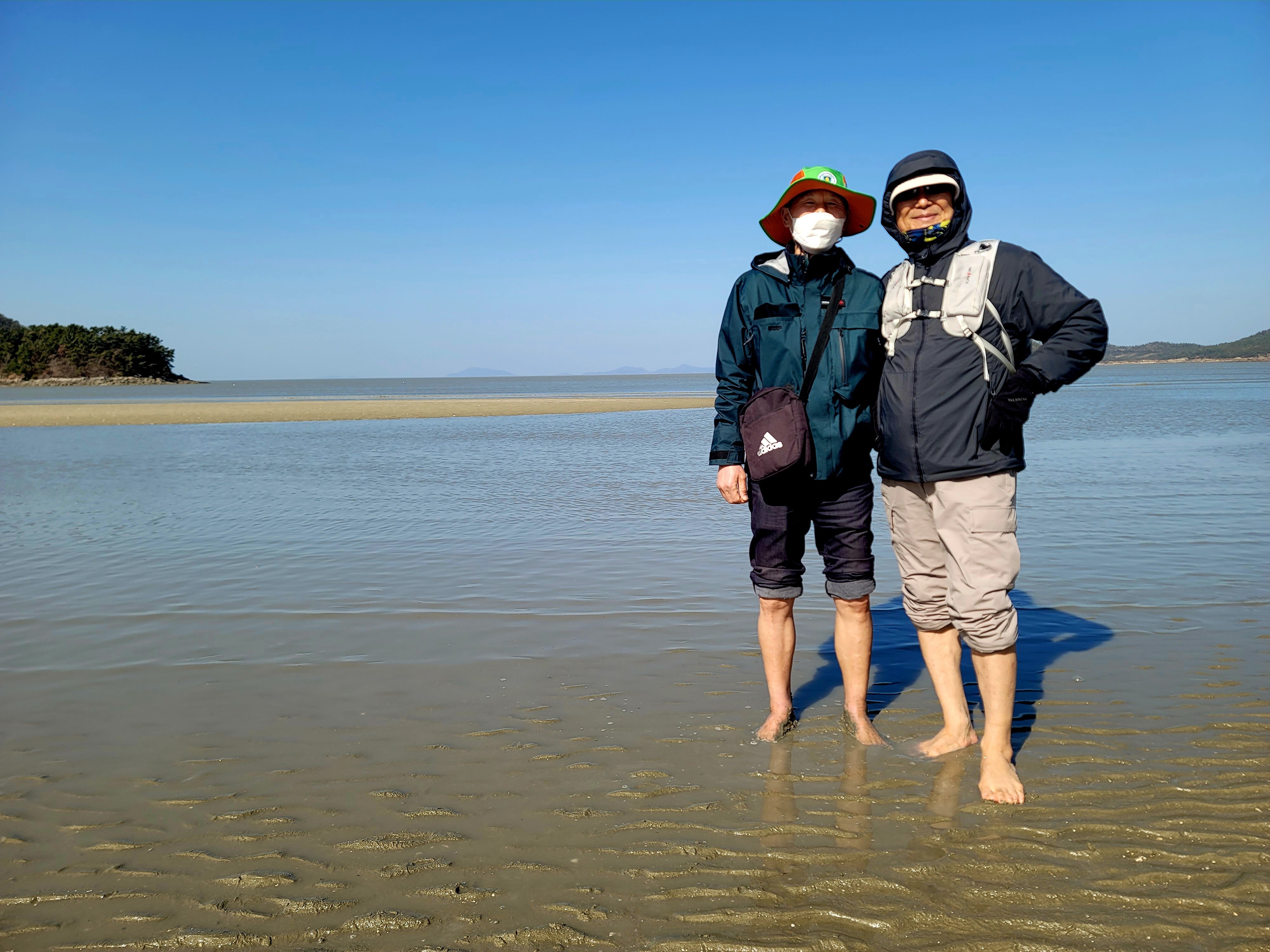 둔장해변에서 약 3시간 30분 동안 맨발걷기