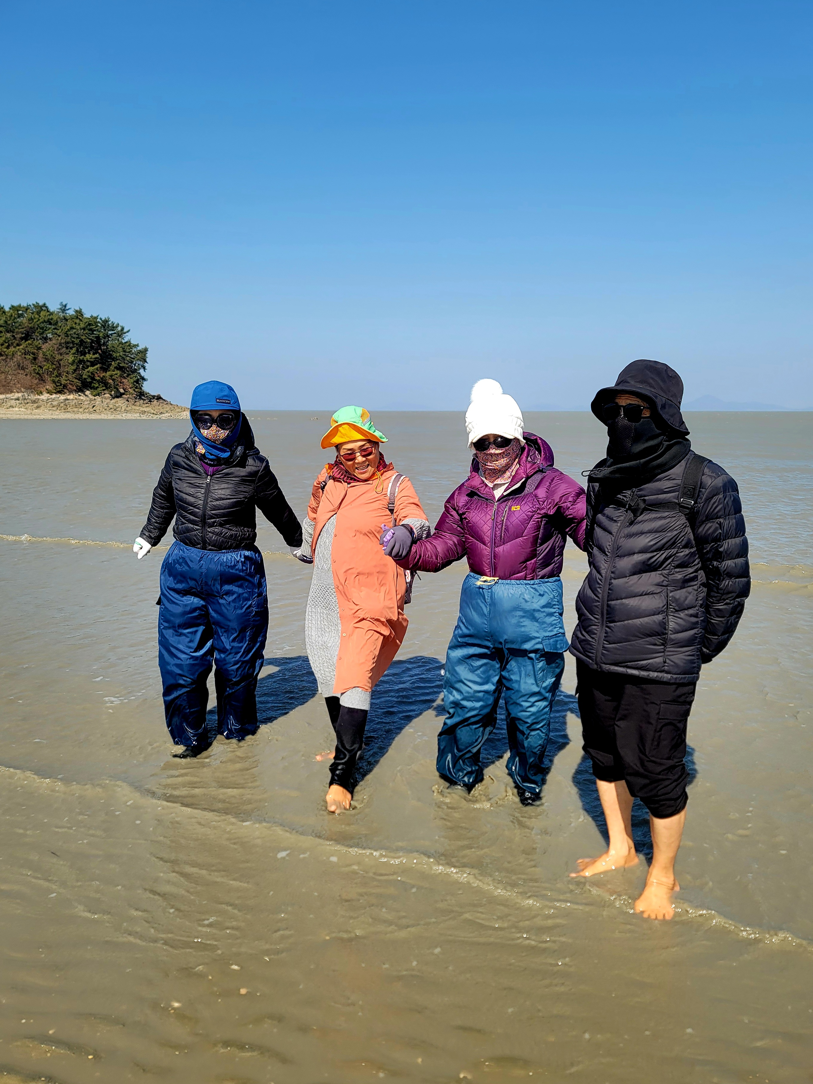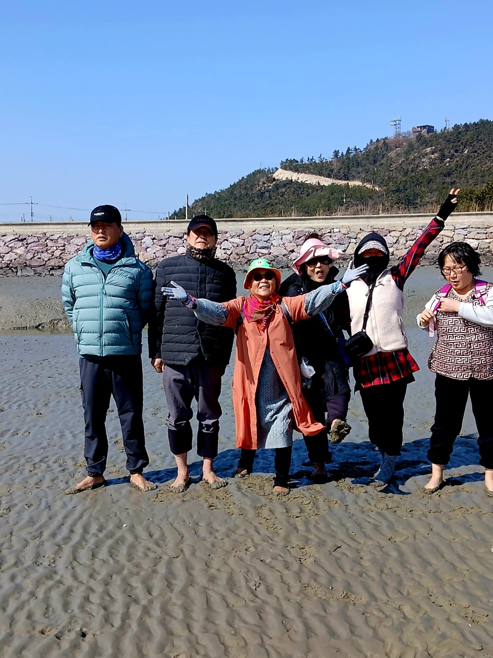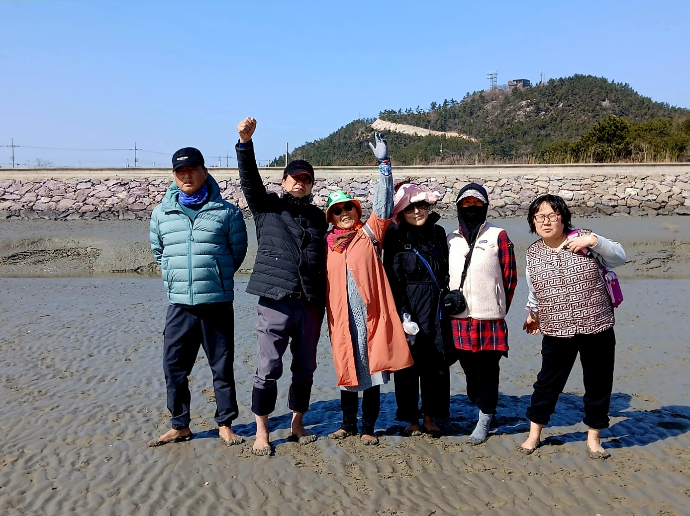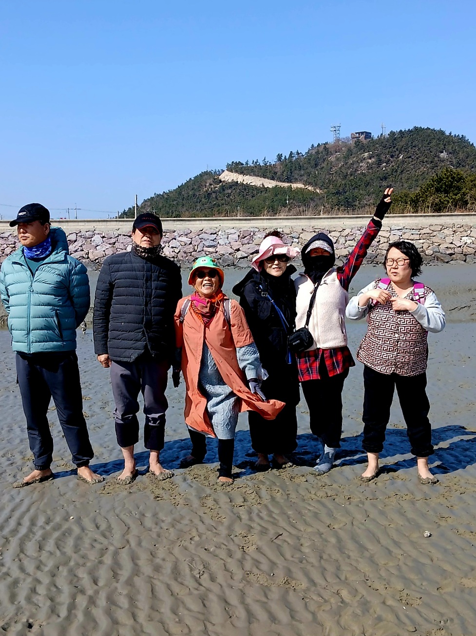 둔장해변에서 약 3시간 30분 동안 맨발걷기