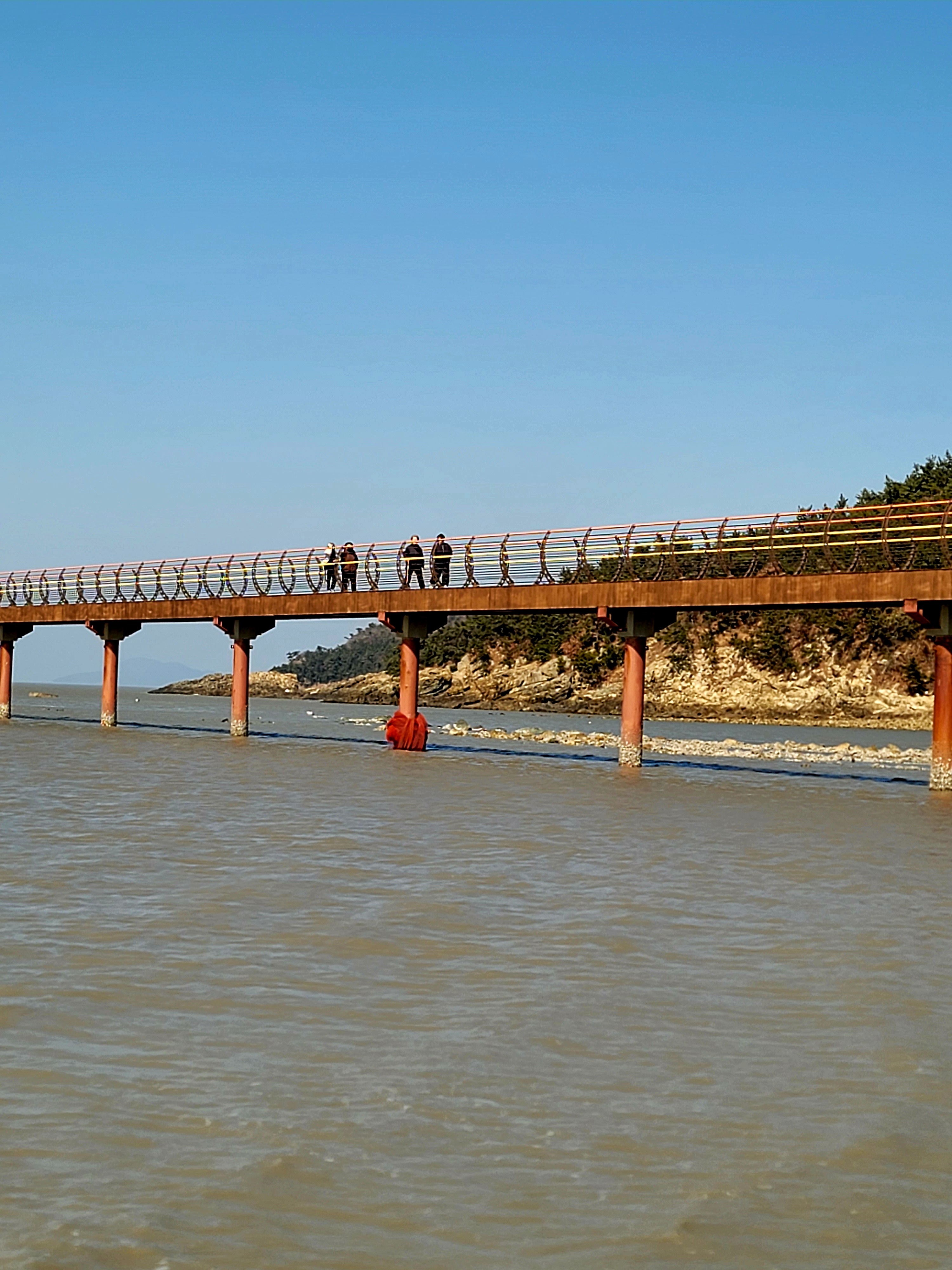 ◇물때에 따른 변화: 밀물 때는 바다 위를 걷는 듯한 스릴을 느낄 수 있고, 썰물 때는 광활하게 펼쳐진 갯벌의 생태를 관찰할 수 있습니다. 칠게나 짱뚱어 같은 갯벌 생물들을 다리 위에서 내려다보는 재미가 있습니다.