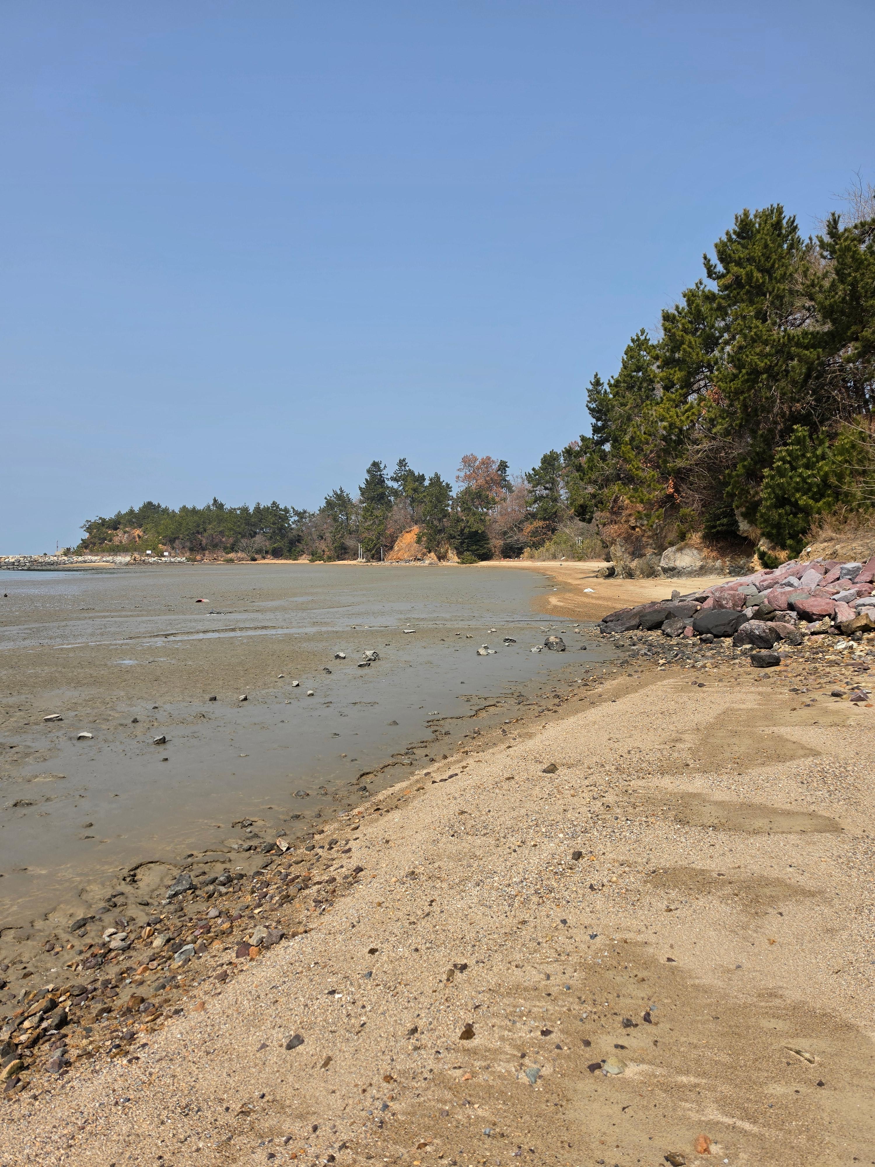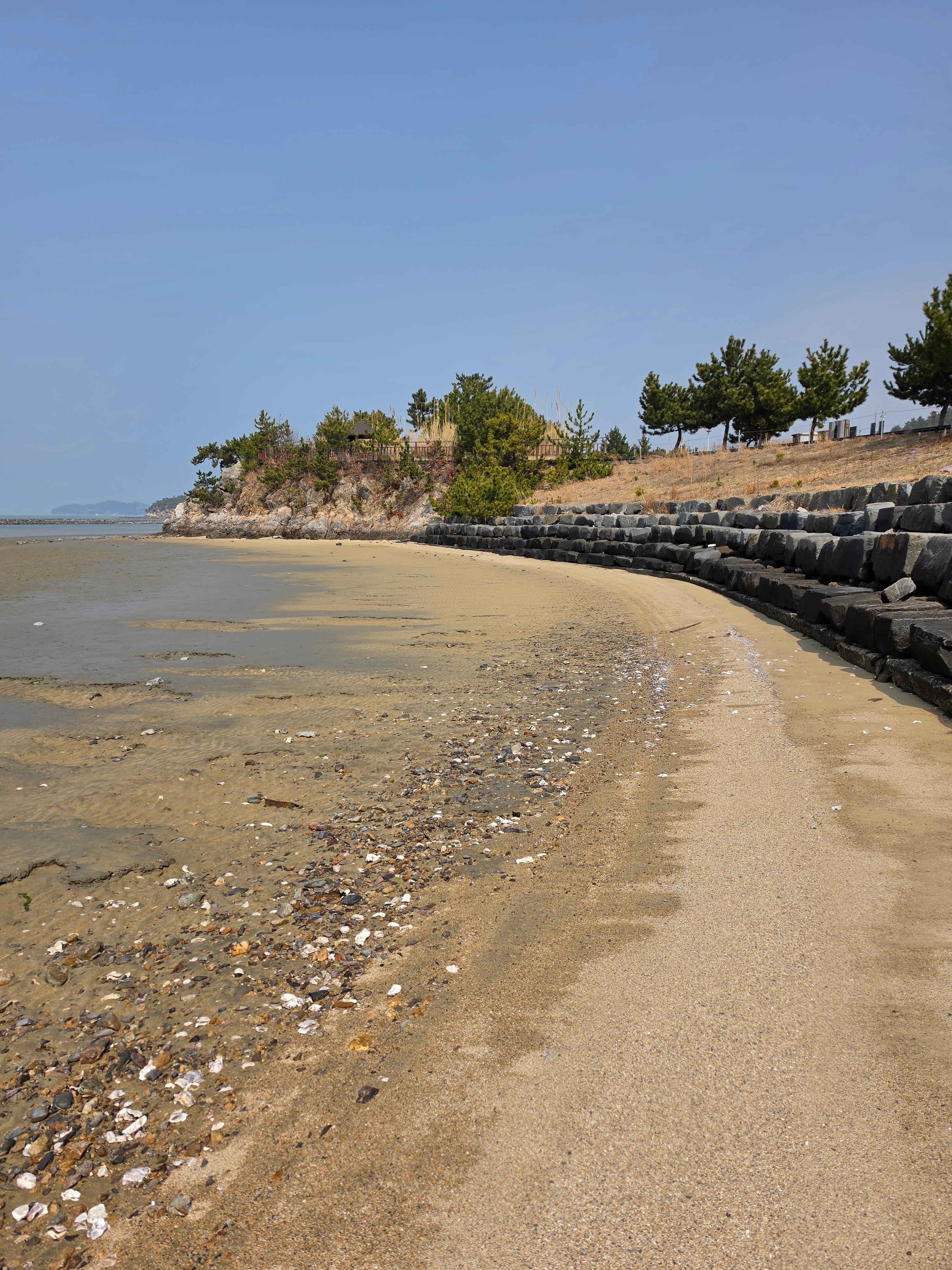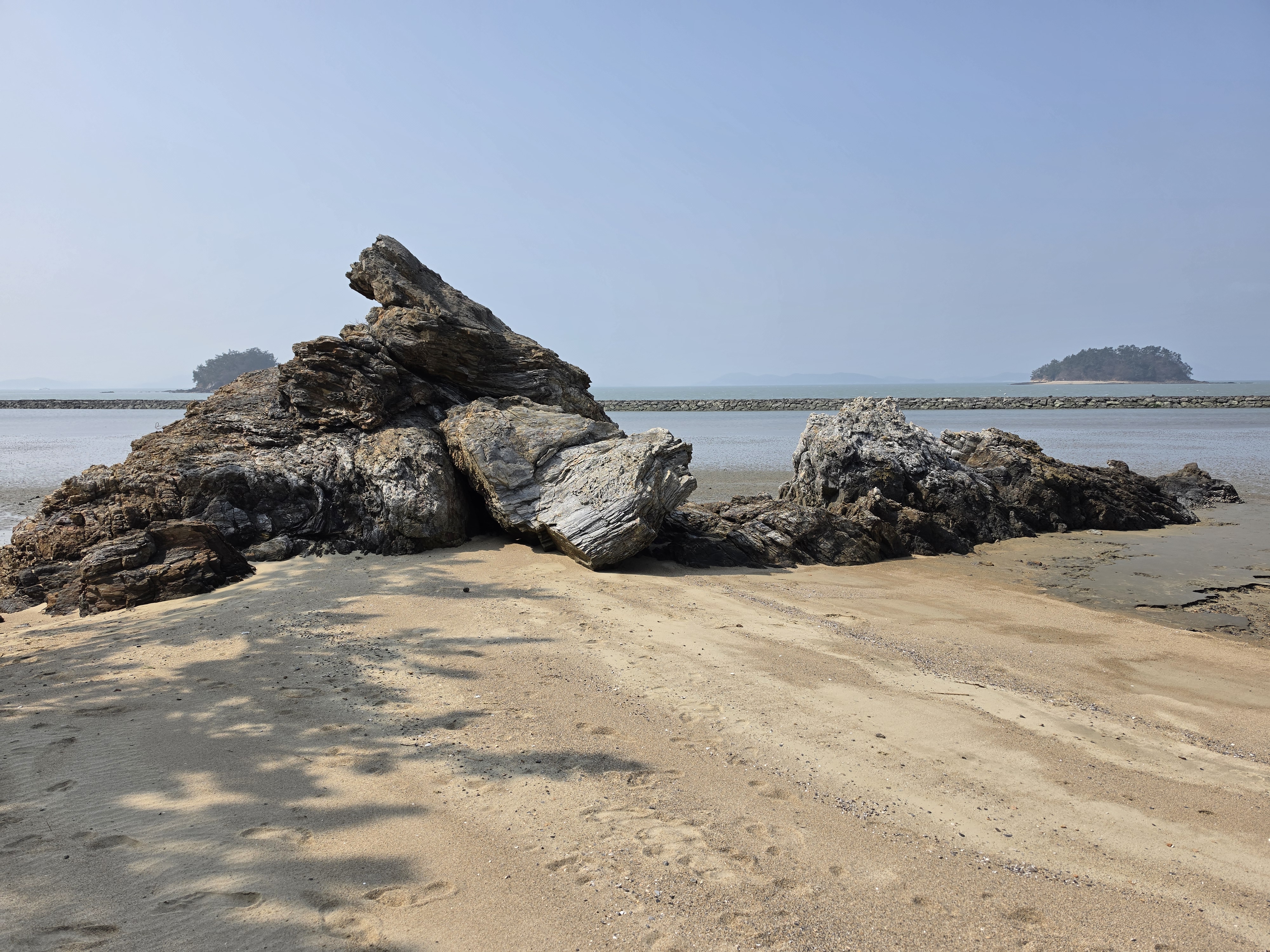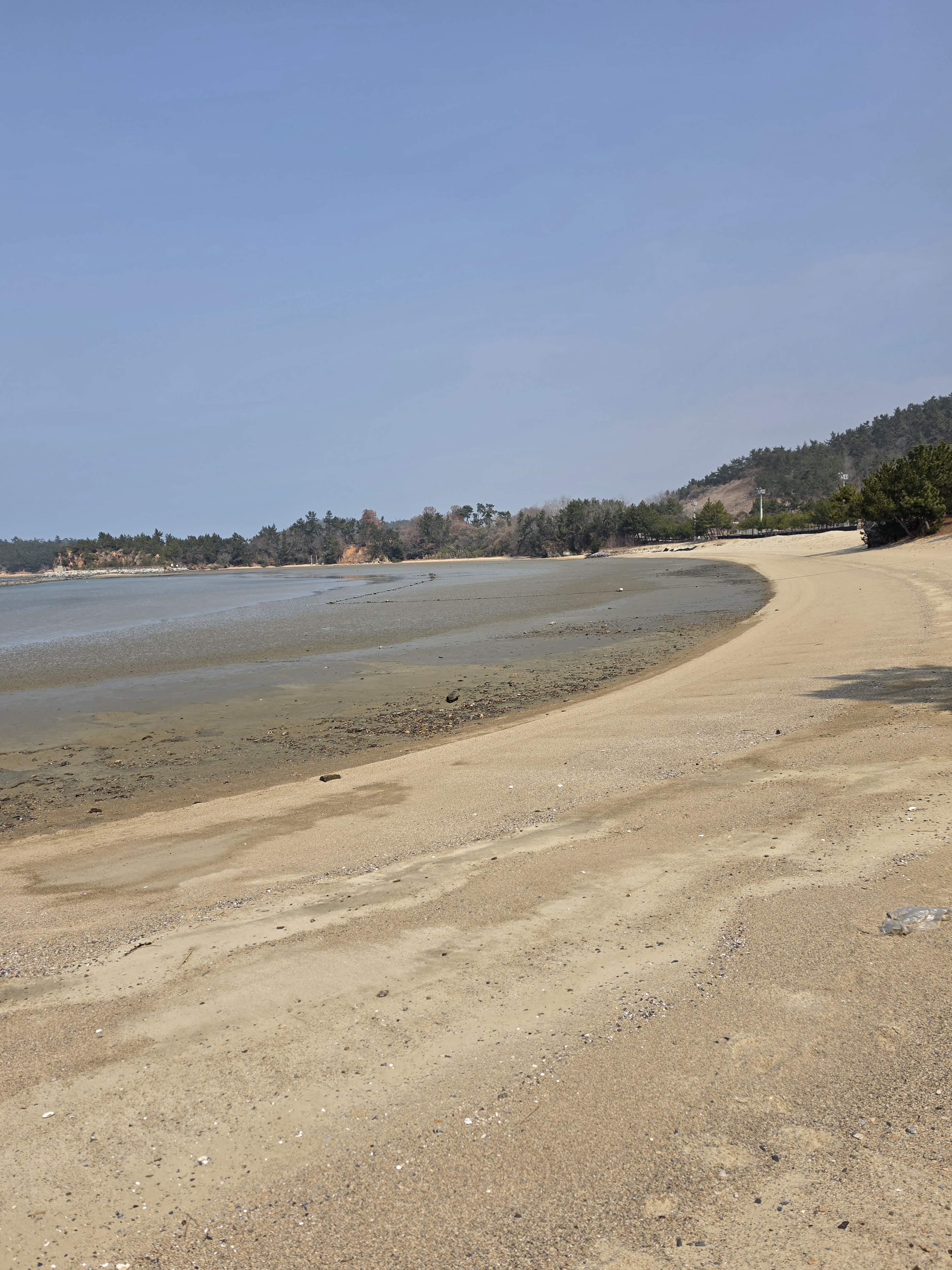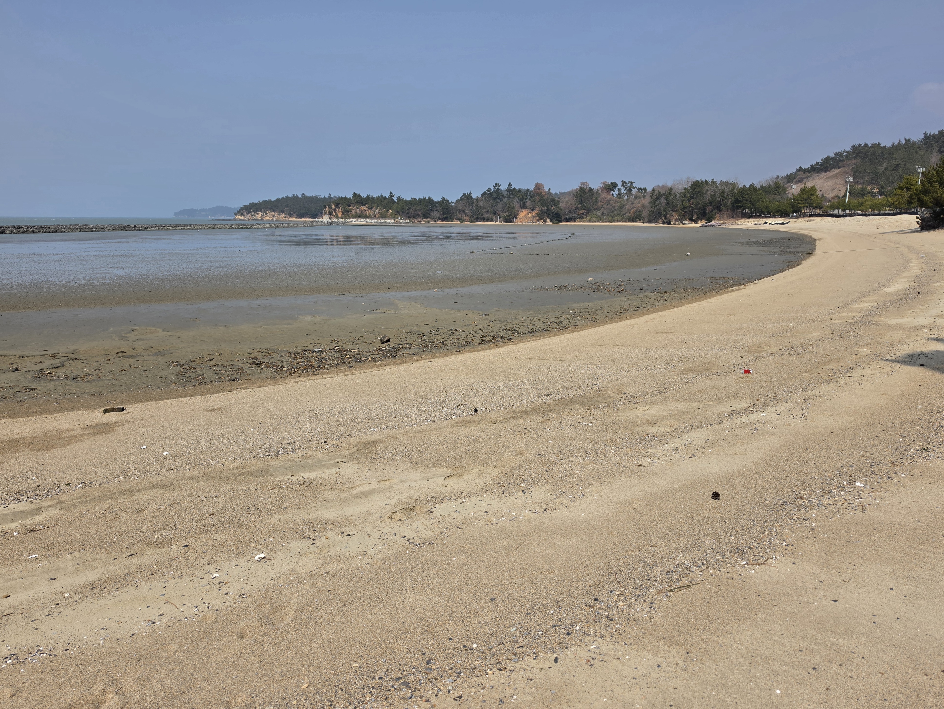 특징: 백사장의 폭도 넓은 편이며, 경사가 완만해서 물이 빠졌을 때 드러나는 모래 벌판이 상당히 광활합니다.