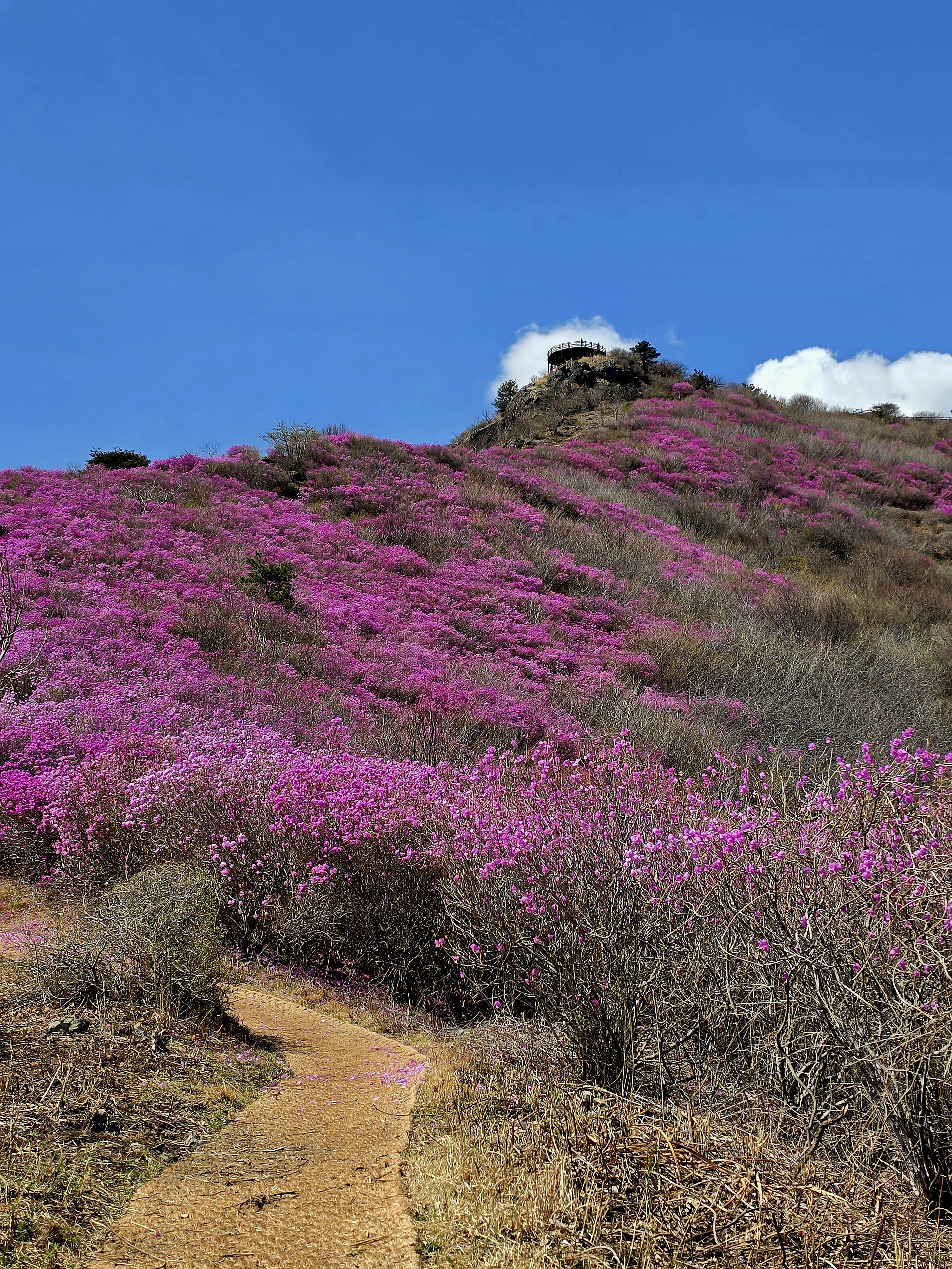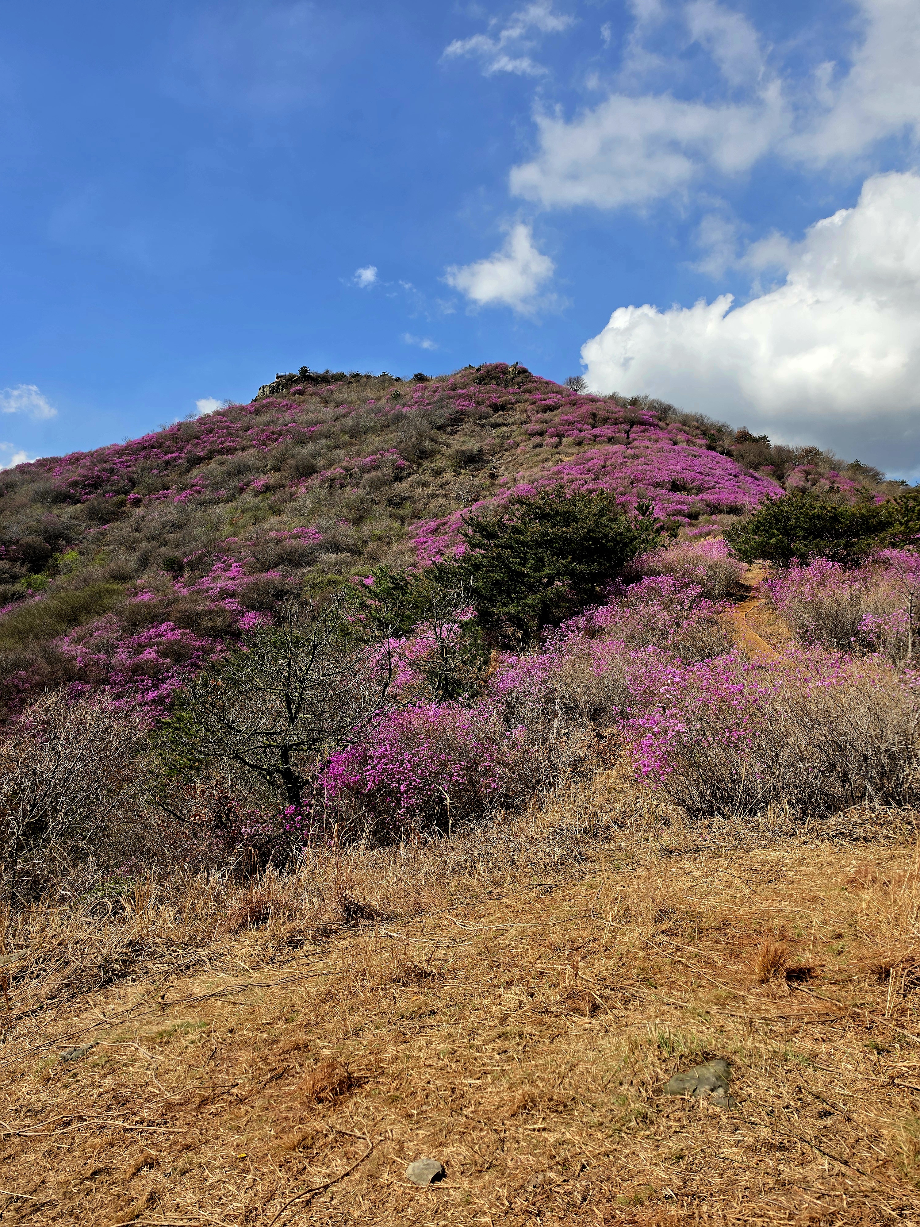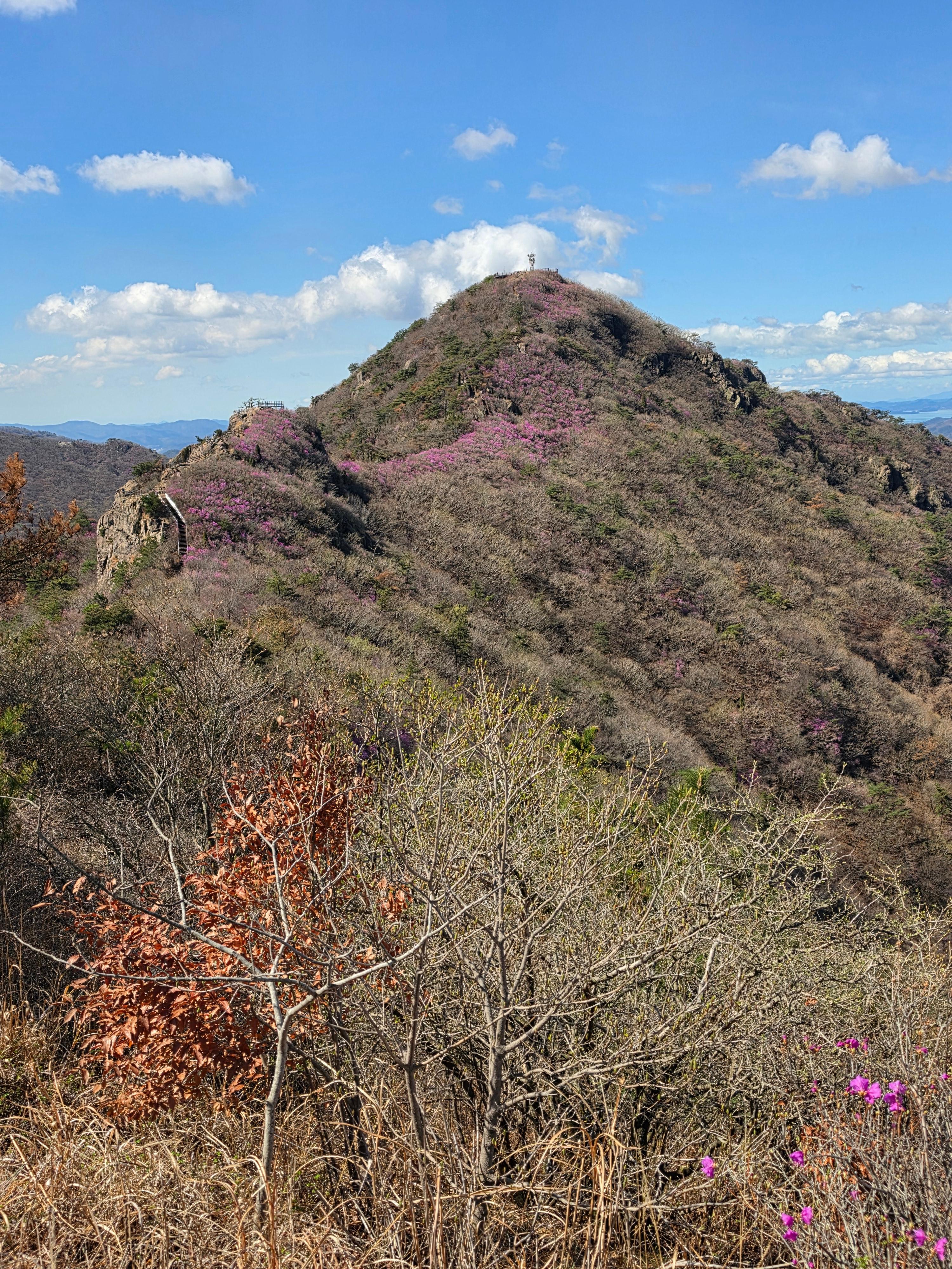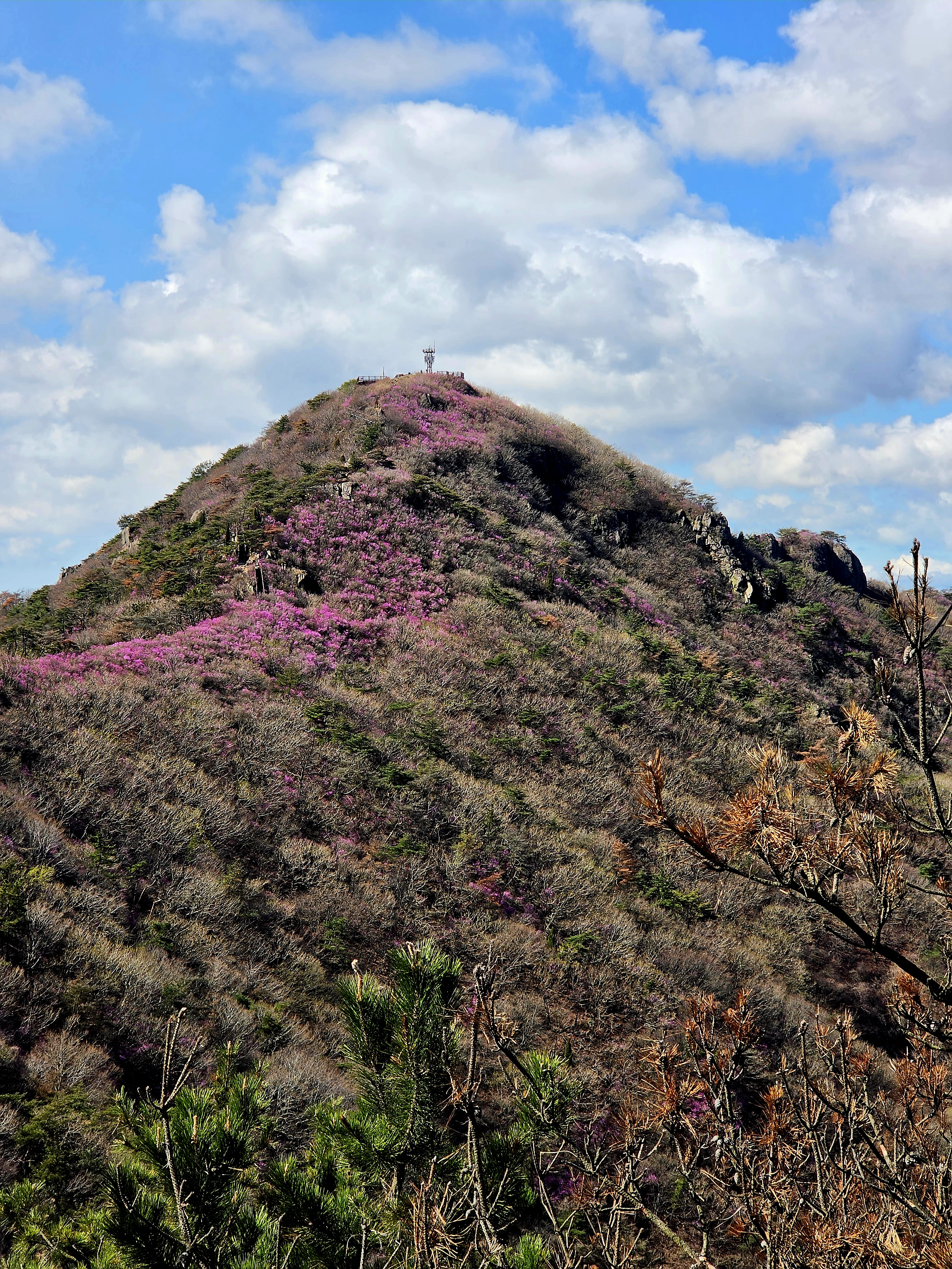 ○ 개화 현황: 현재(3월 말)가 딱 진달래가 능선을 따라 만개하는 시기입니다. 다만, 축제 기간에는 인파가 매우 많으므로 이른 오전에 산행을 시작하시는 것을 추천합니다.