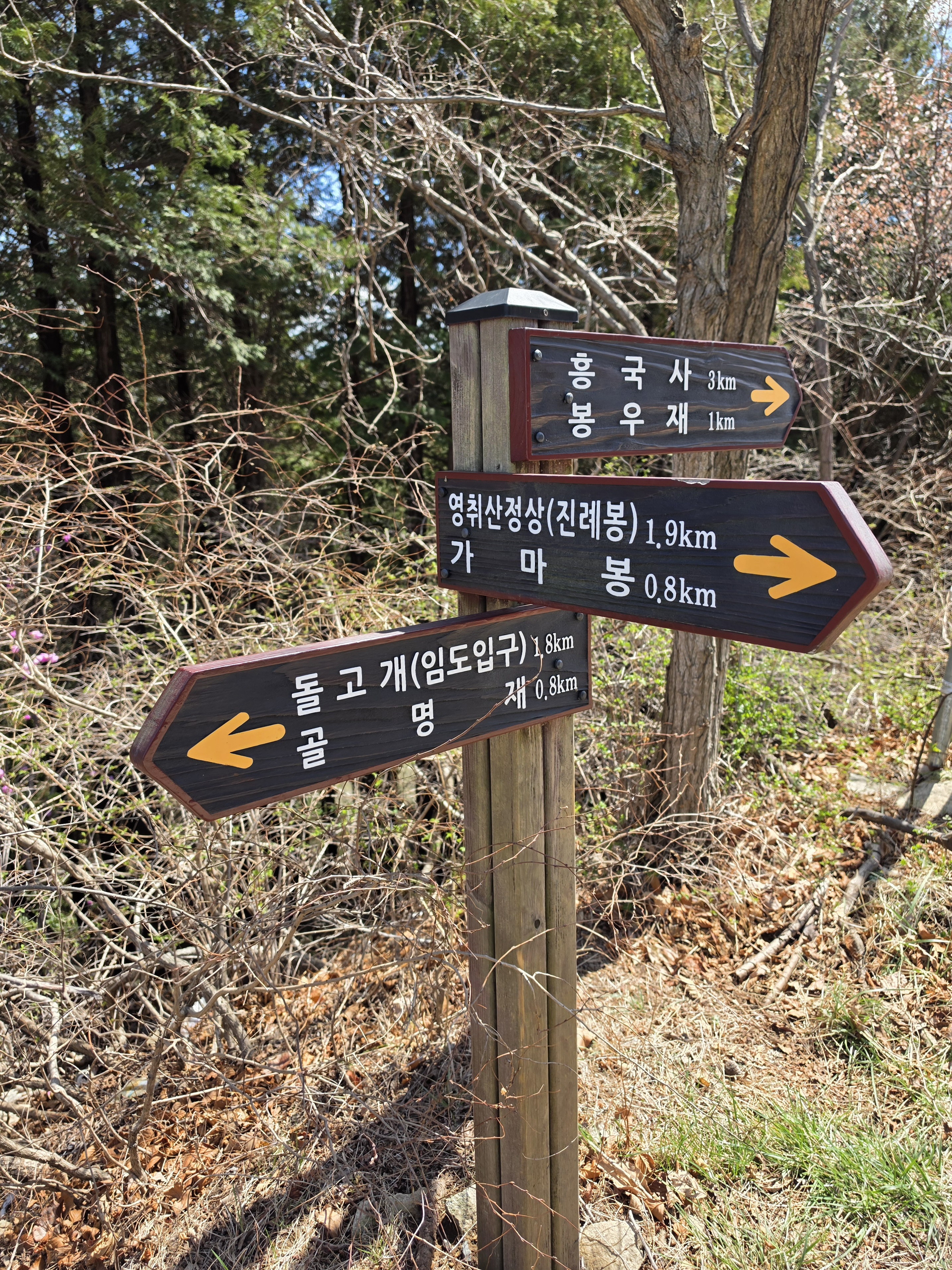 ○ 인기 코스: 돌고개 주차장 → 가마봉 → 진례봉(정상) → 봉우재 → 시루봉 → 영취봉 → 흥국사 (약 7~8km, 4~5시간 소요)