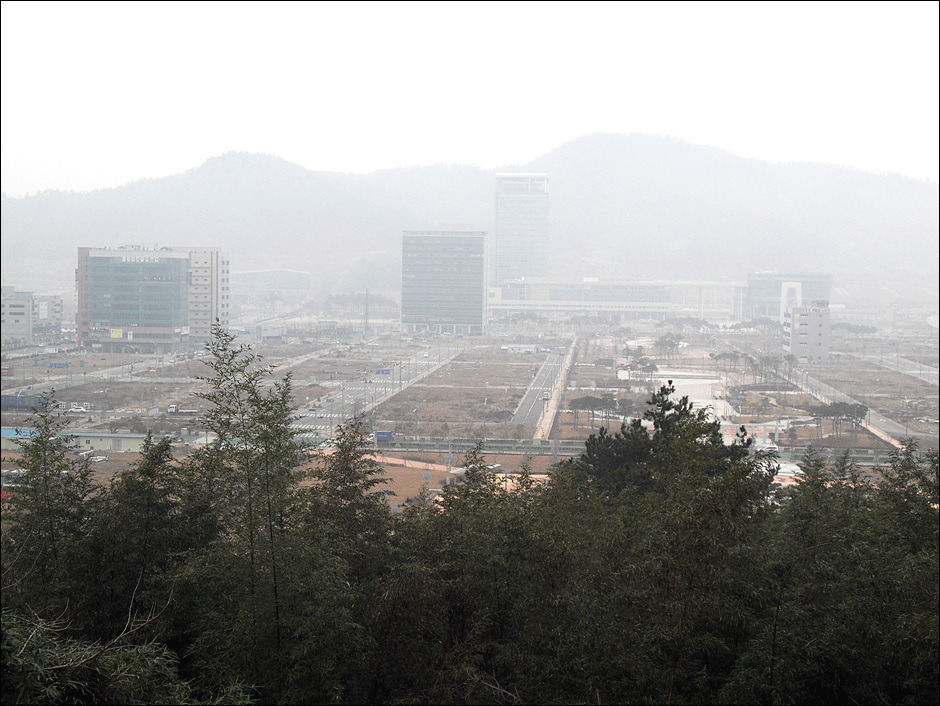 안개때문에 영산강은 하나도 보이지 않는다.