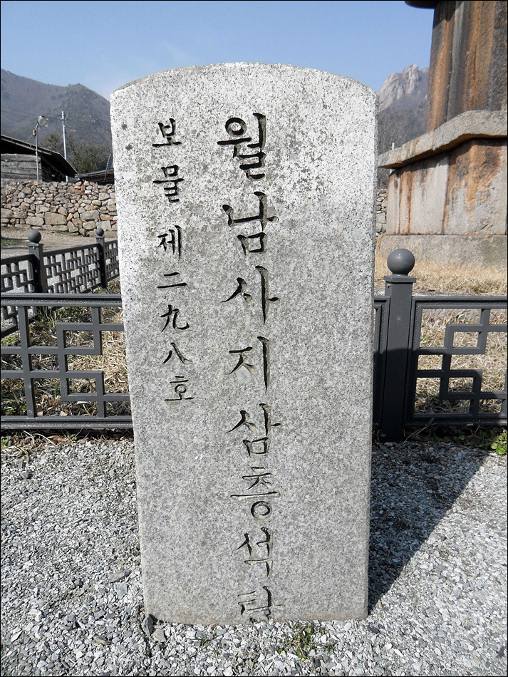 마당 한가운데는 월남 사지 삼층석탑(보물 제298호)만 덩그러니 세워져 있다.