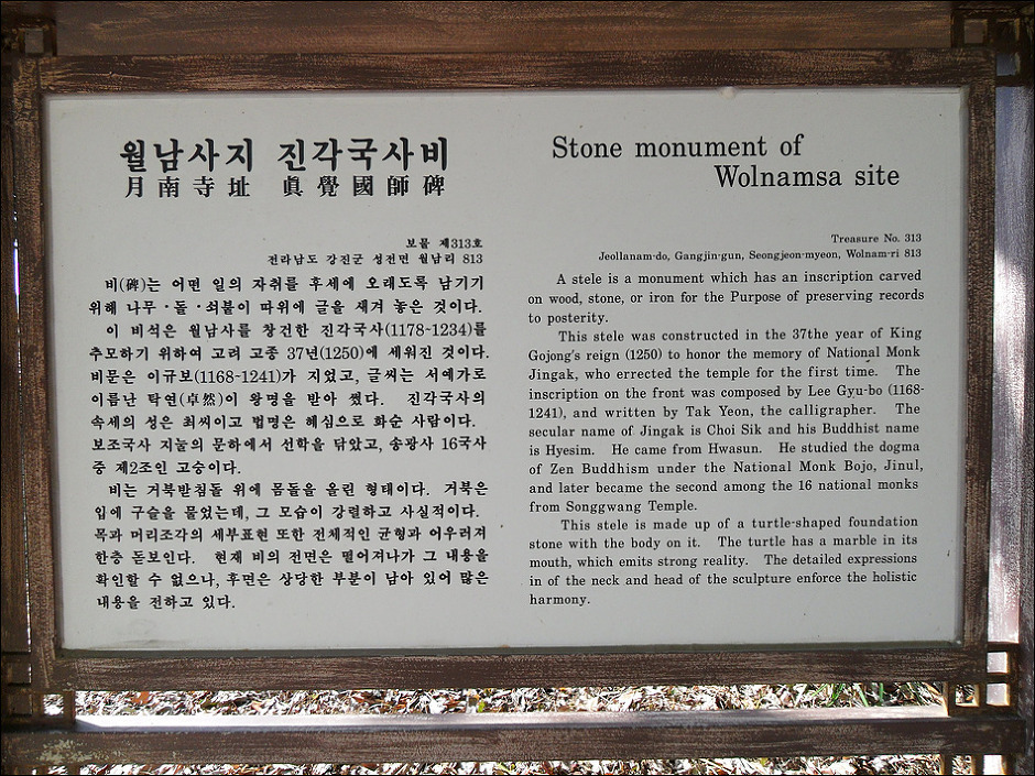 *문화재명칭변경(2002.03.12) : 월남사지석비→월남사지진각국사비