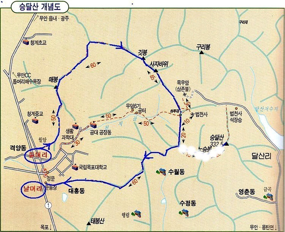 ◆ 산행코스 : 목포대학교 ~ 청계 제일교회 ~ 매봉 ~ 사자바위 ~ 하루재 ~ 산불감시초소 ~ 수월동 삼거리 ~ 목포대학교